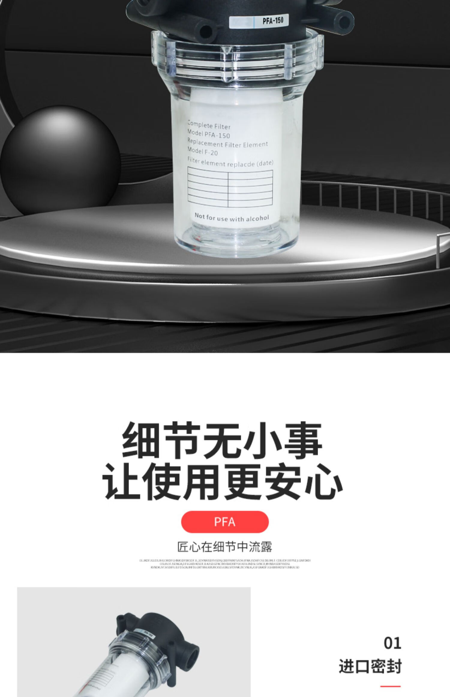 Bairuichuan PFA-150/200 plastic vacuum filter filter cup large flow/4 minutes 6 minutes cleanable and replaceable filter element PFA-150