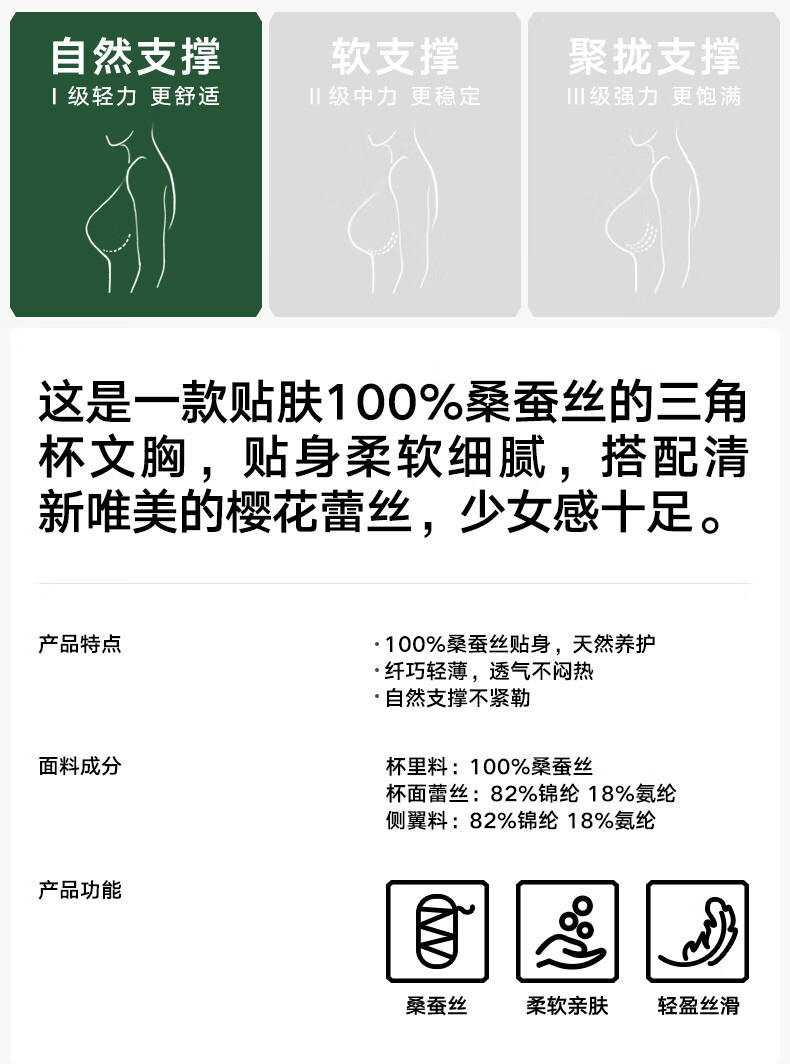 Songshan Cotton Store Sakura Sexy Women's Bra Triangular Cup Mulberry Silk Wireless Underwear