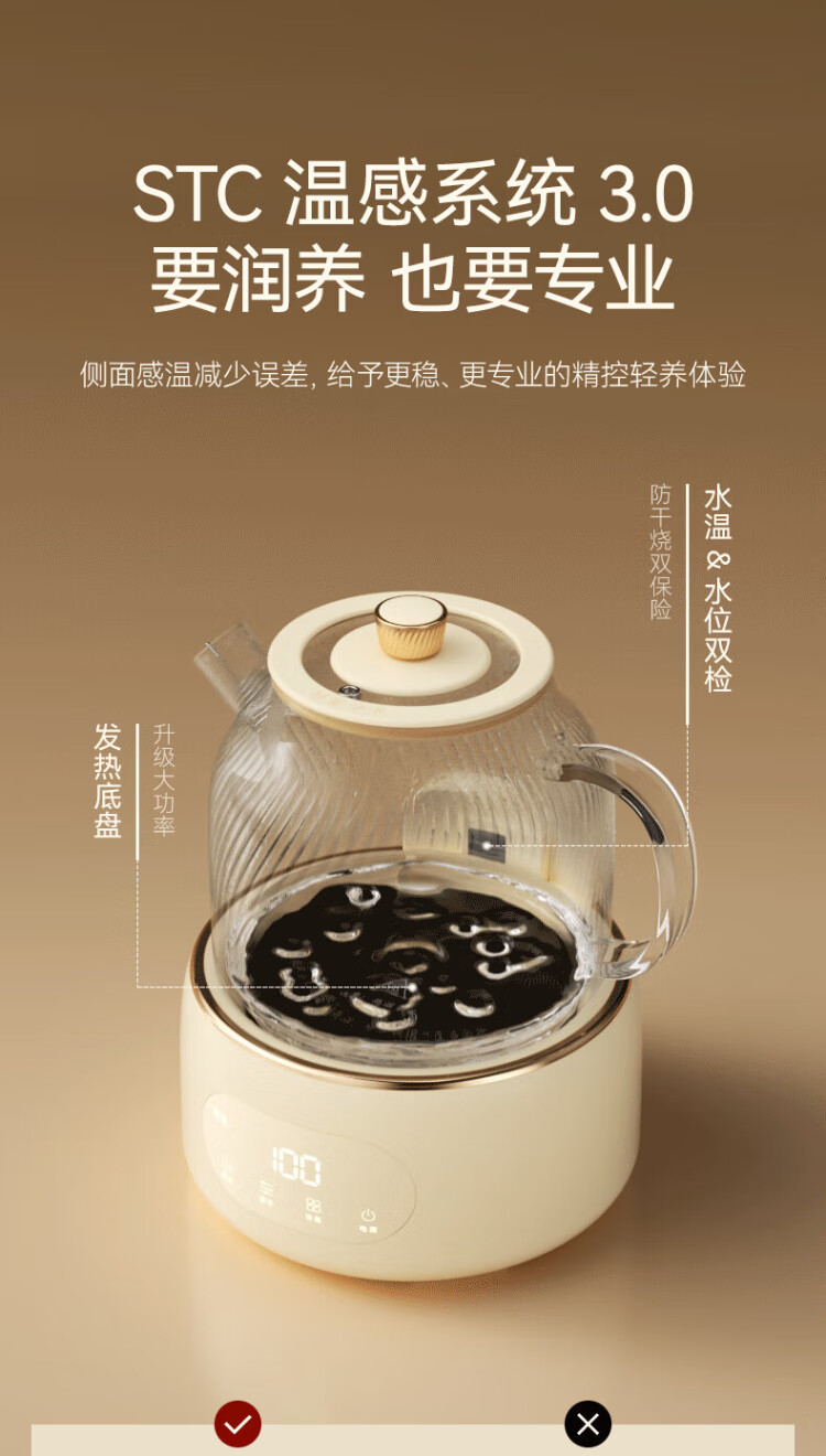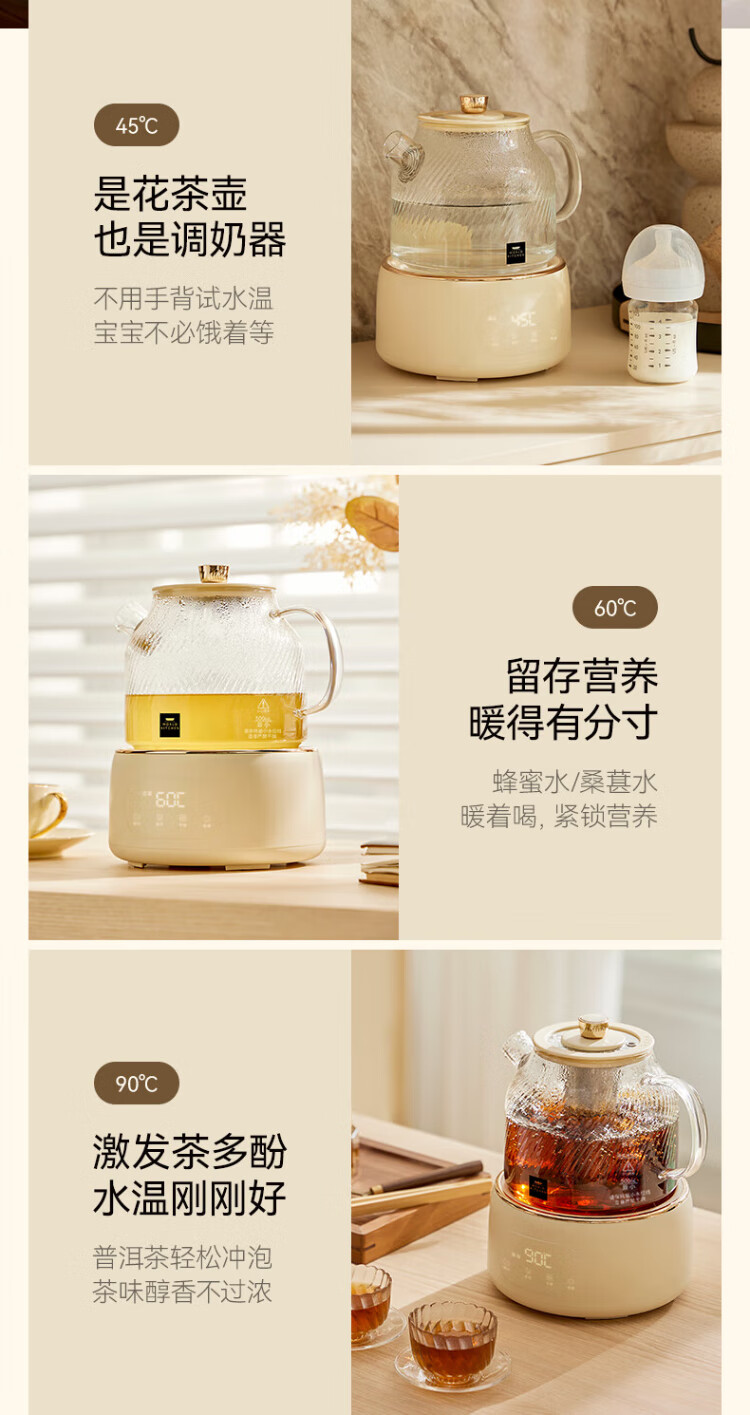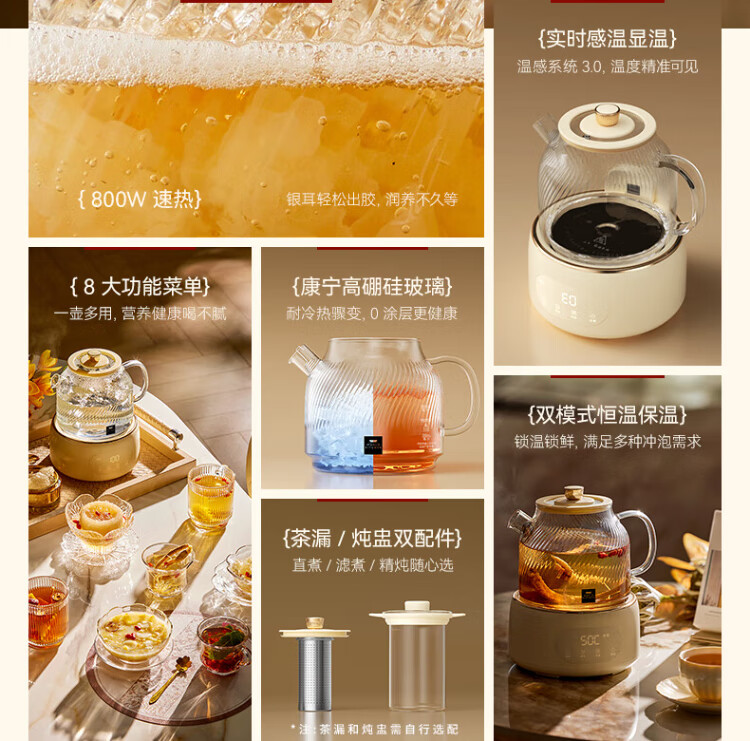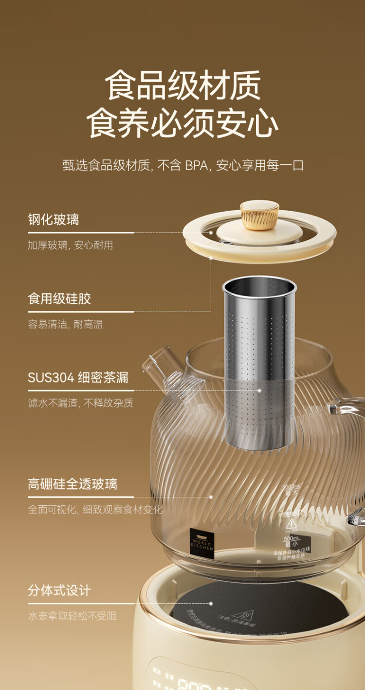 World KitchenAmerican Corning Health Pot Full Glass Constant Temperature Kettle Teapot Tea Maker 1L Office Essential Household Flower Teapot Stewing Kettle Electric Kettle (Standard Model)