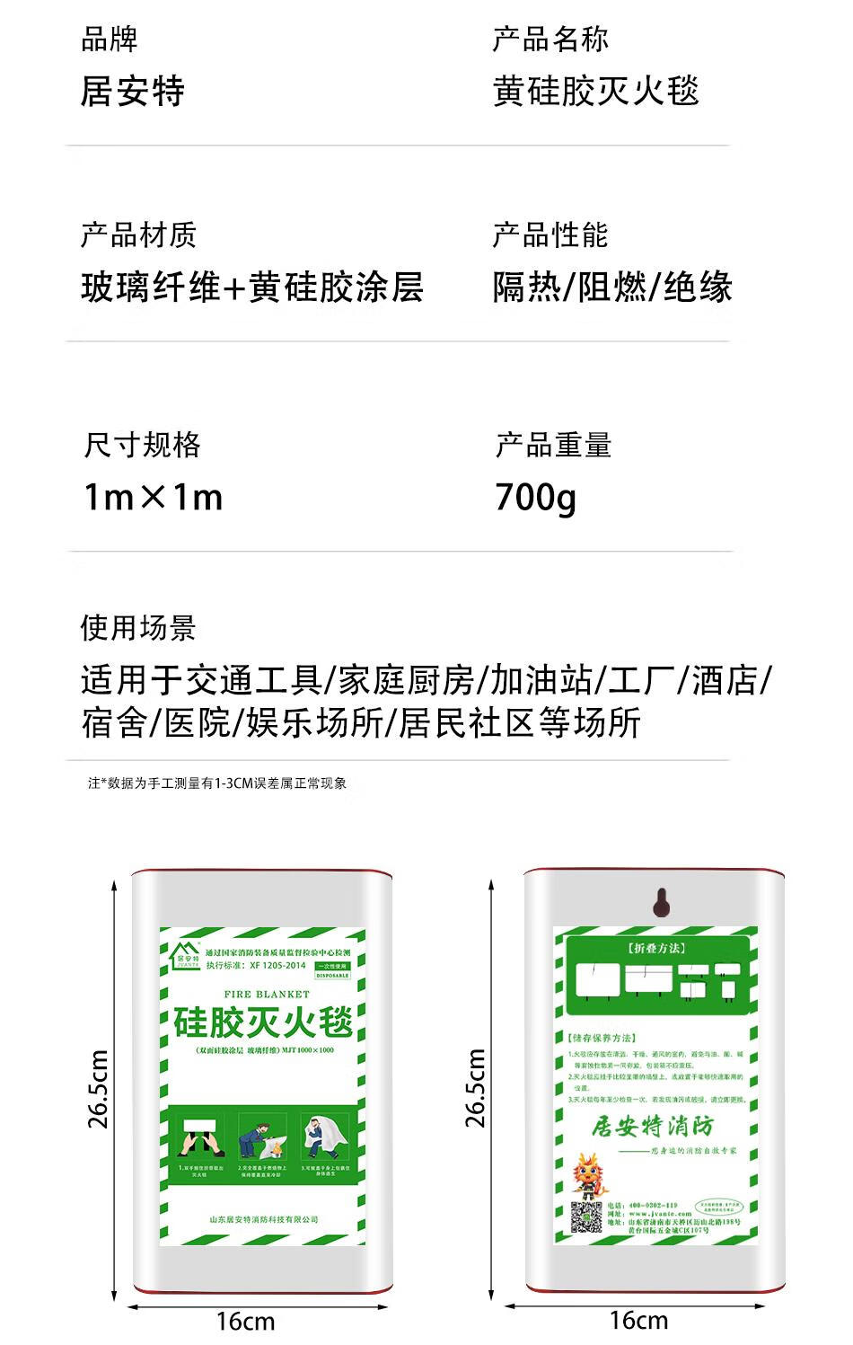 Juant double-sided silicone fire blanket 1m*1m soft and non-prickly, flame retardant and high melting point Home kitchen hotel office building fire blanket double-sided coating upgraded flame retardant webbing