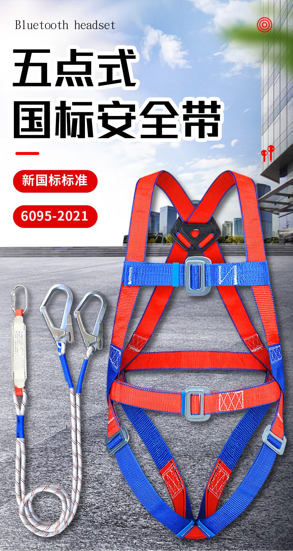 Xinbaolin high-altitude work full-body anti-fall European-style five-point safety belt single small hook 2 meters