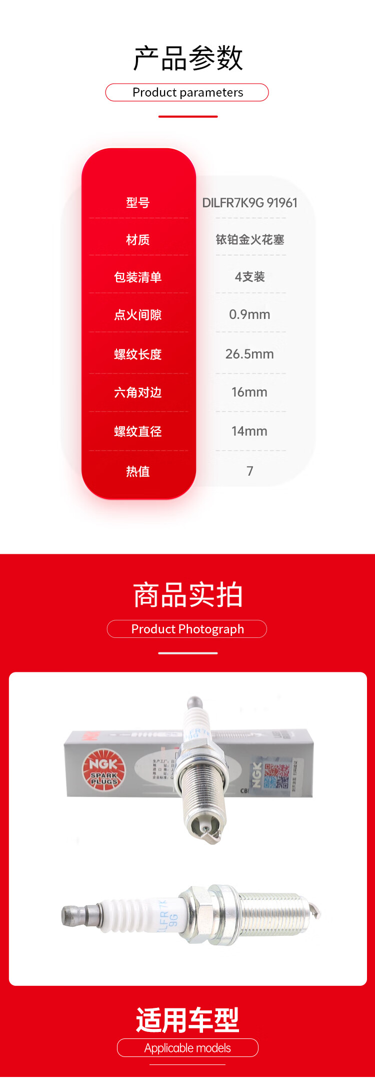 NGK spark plug iridium platinum double needle DILFR7K9G four-pack Highlander Crown Lexus GS300NX300