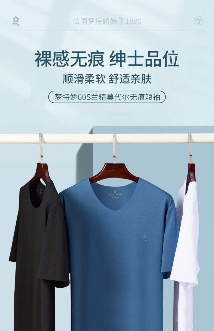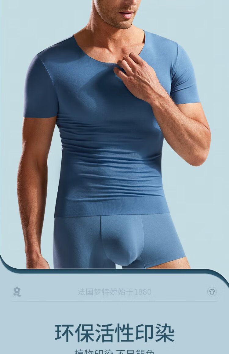 Montagut Seamless Modal Short Sleeve Men's Thin Slim Fit Sports Breathable Inner Top Tight Undershirt Underwear Four Seasons
