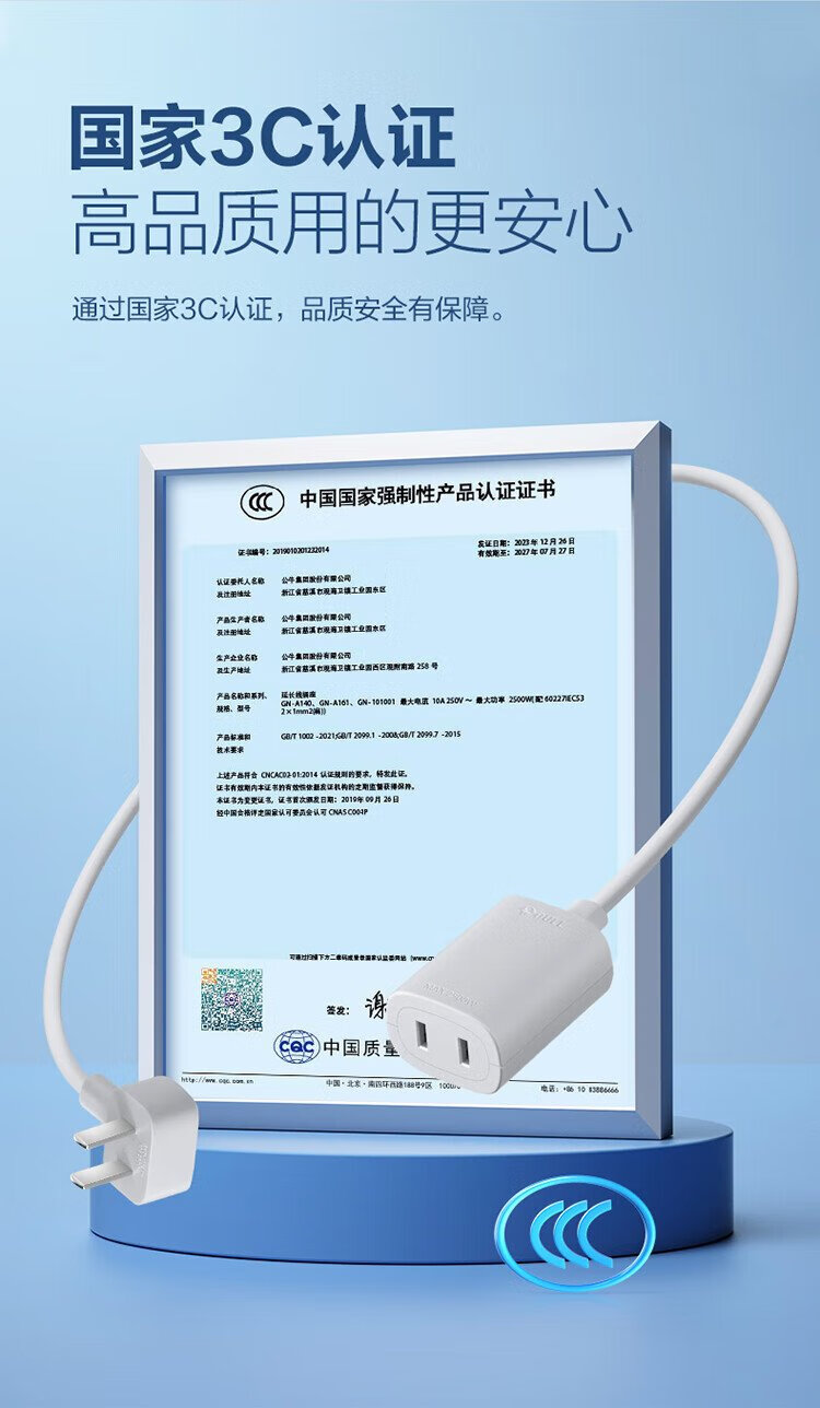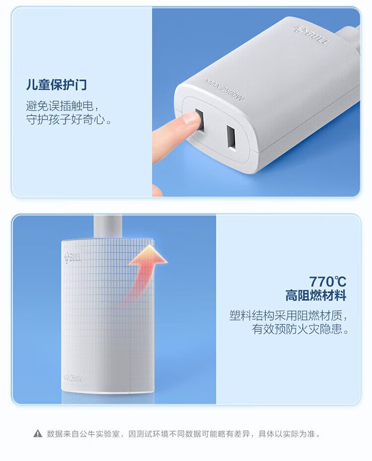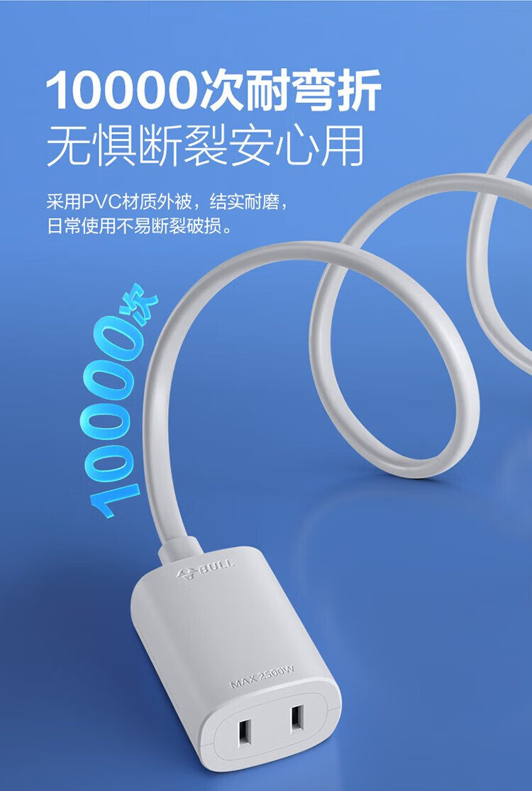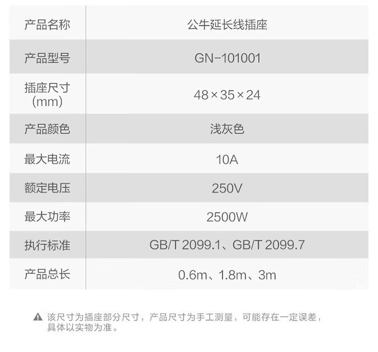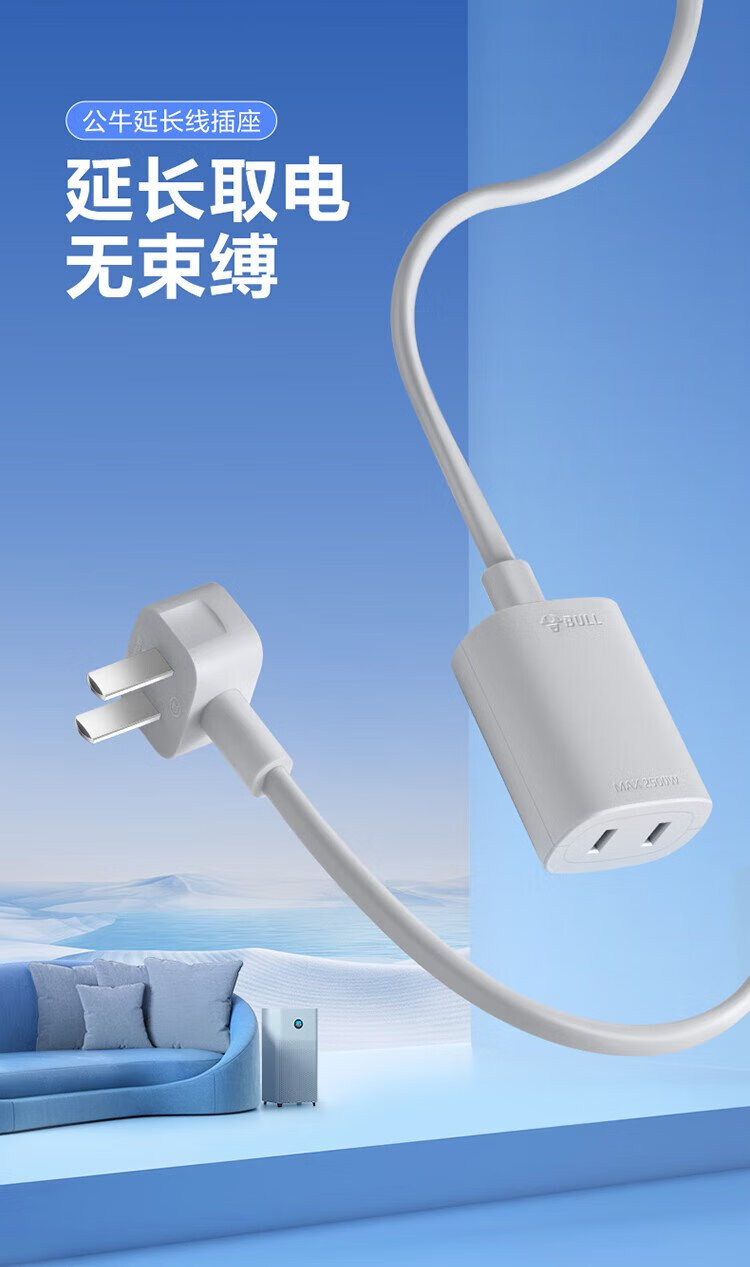 公牛(BULL)插座/插线板/插排/排插/接线板/拖线板/延长线 1位无开关全长1.8米 GN-101001