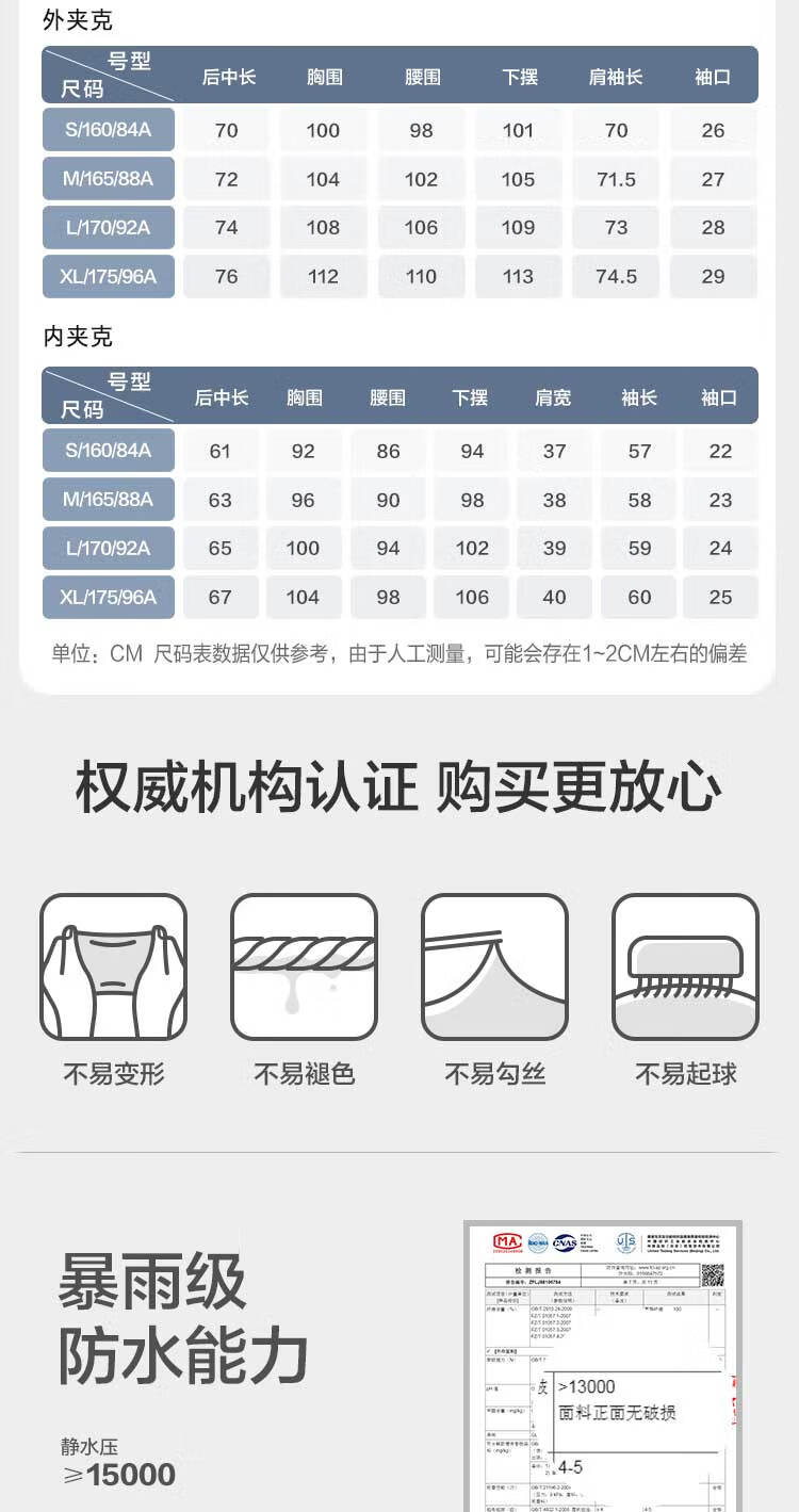 China (cm) 165 / 88-90 170 / 96-98 175 / 108-110 180 / 118-122 185 / 126-130
