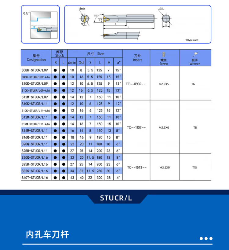 ZOTO screw-type inner hole turning tool holder CNC lathe ordinary turning tool arrangement machine machine clamp tool anti-seismic 95 straight tool S08K-STUCR09