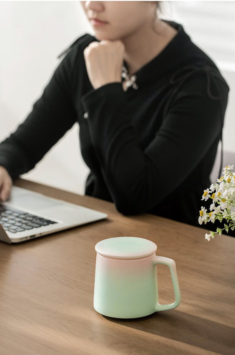 Thirty-year impression tea mug creative ceramic tea water separation with lid office filtered water cup couple cup