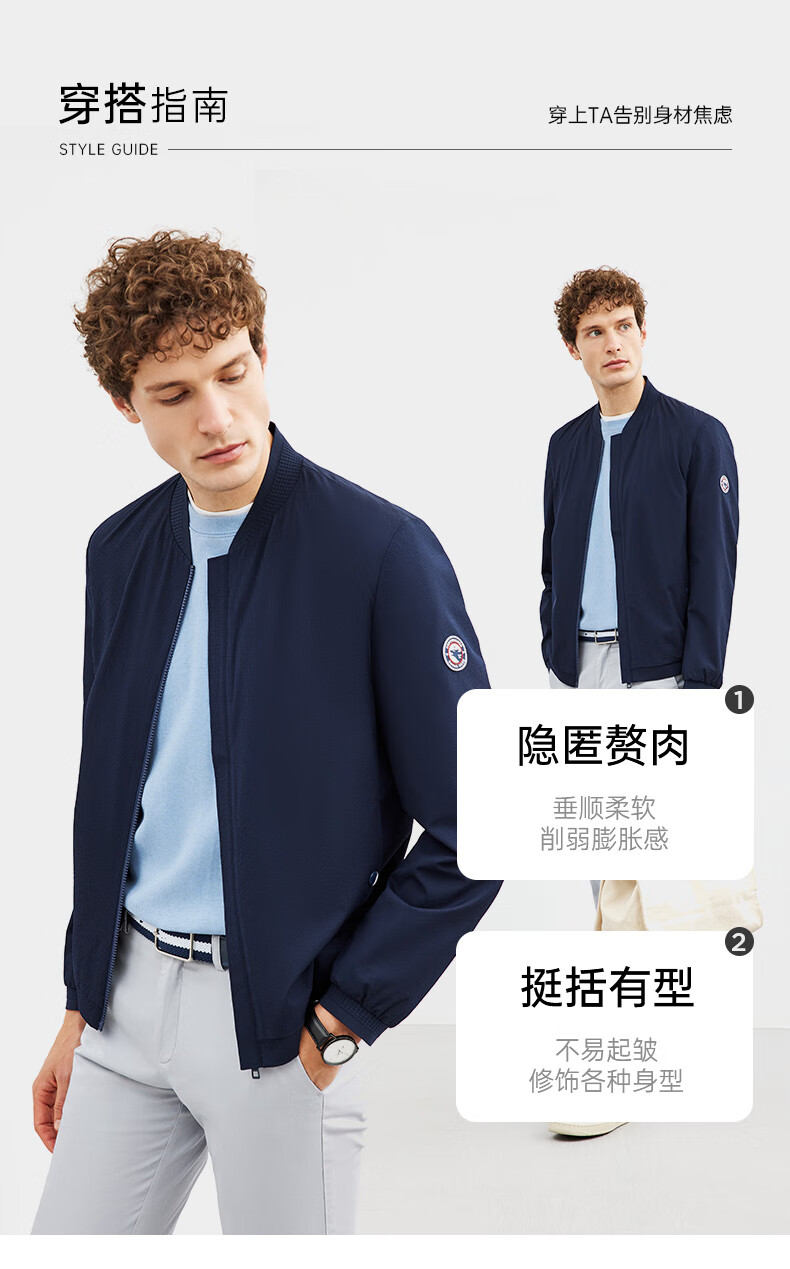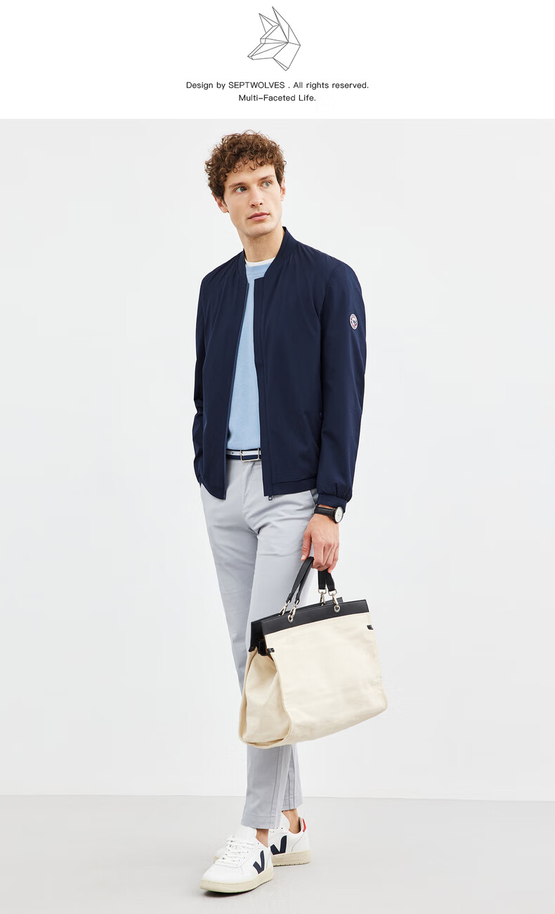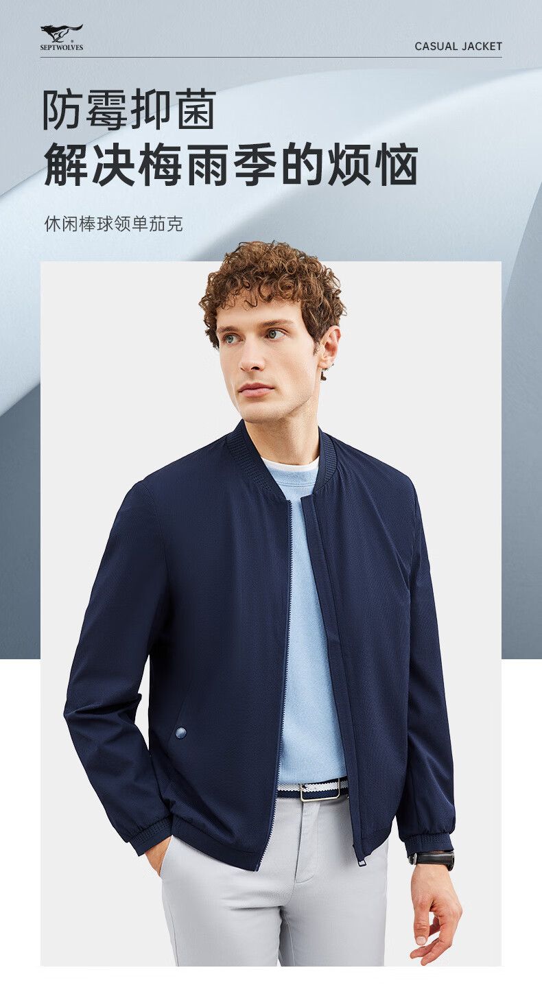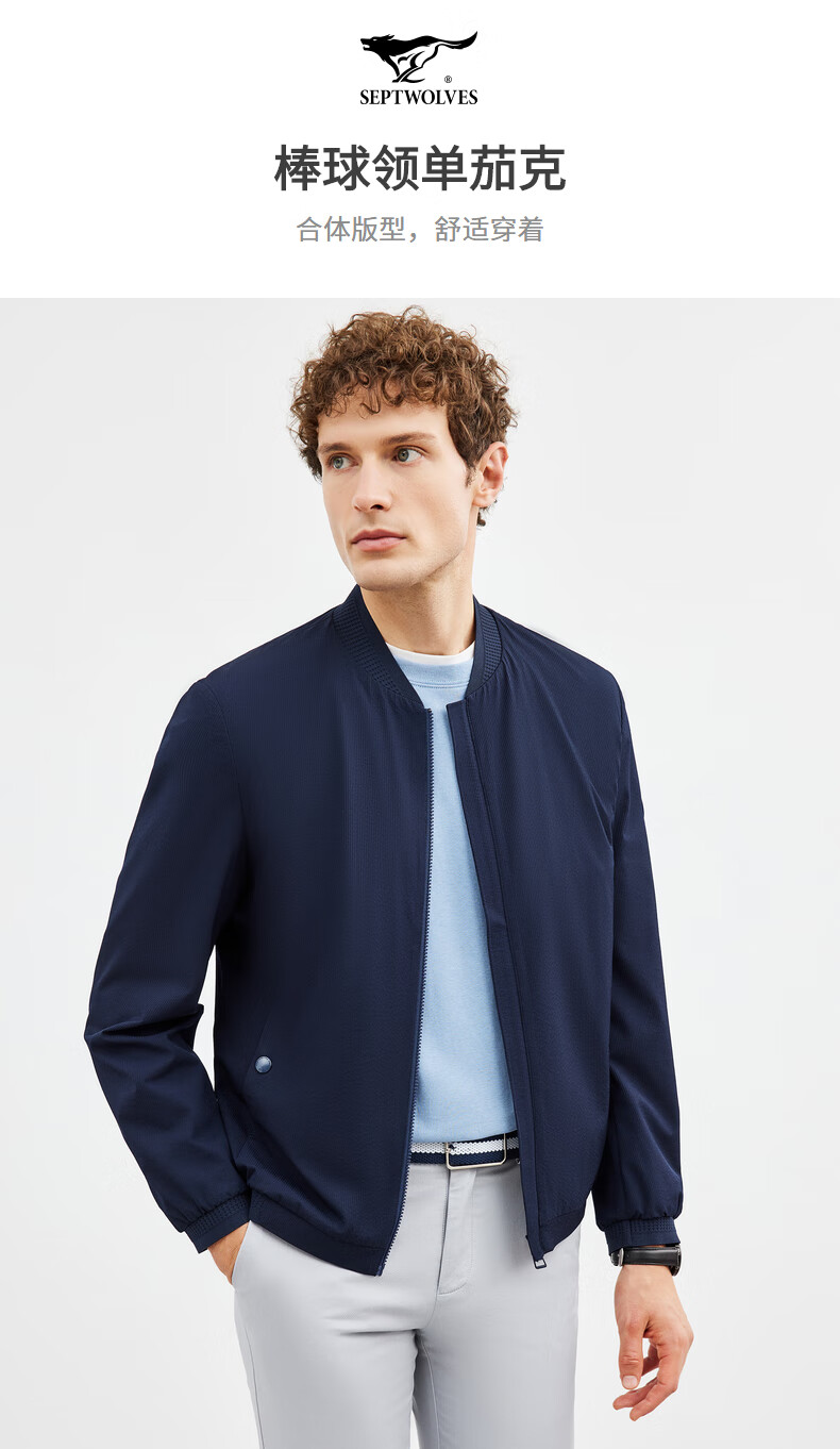 Septwolves Antibacterial Jacket Men's Casual Commuting Baseball Collar Four-Way Elastic Soft Comfortable Easy Care Men's Clothing