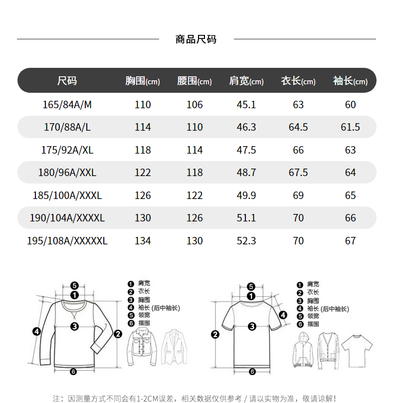 China (cm) 160-165/84-86 165-170 / 88-90 167-172 / 92-96 168-173 / 98-102 170-176 / 106-110