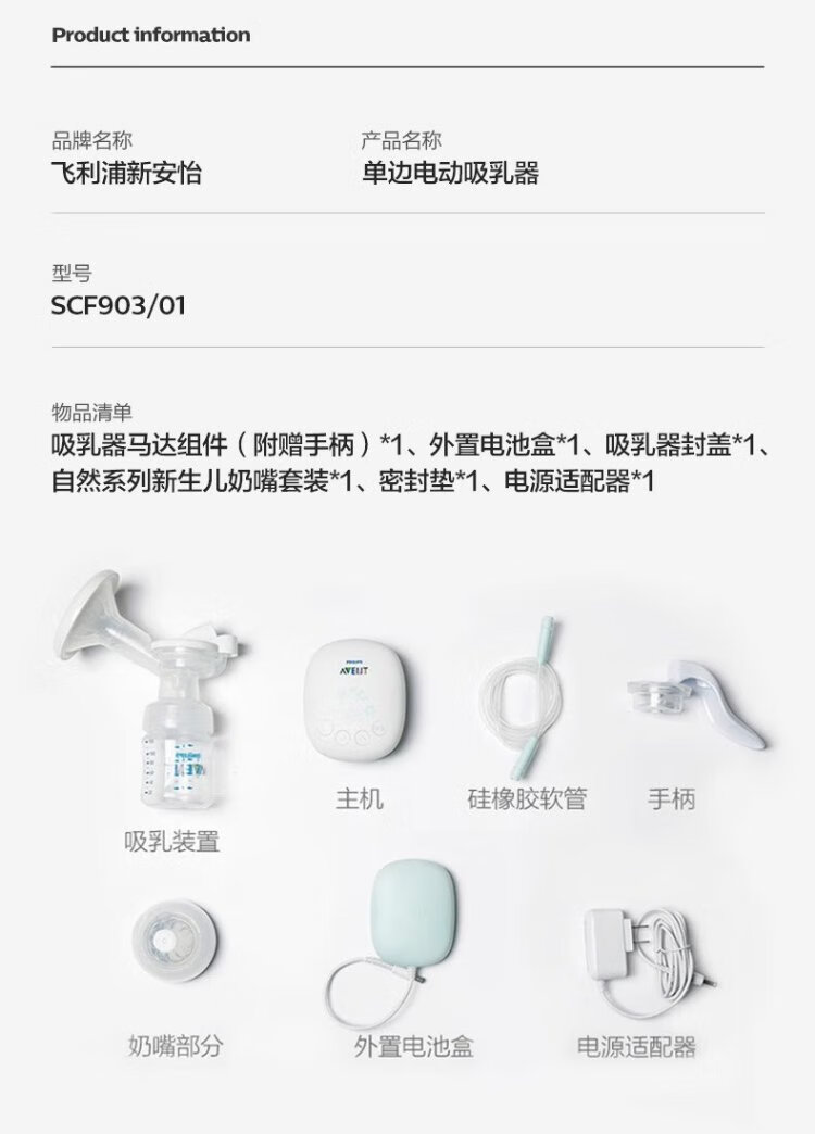 AVENT Philips AVENT electric breast pump battery socket charging unilateral hands-free portable massage breast pump