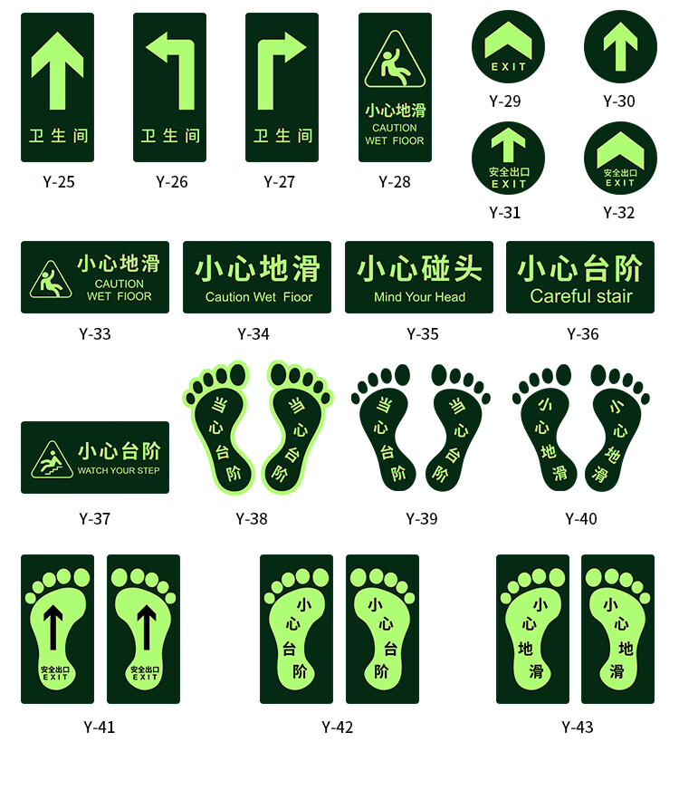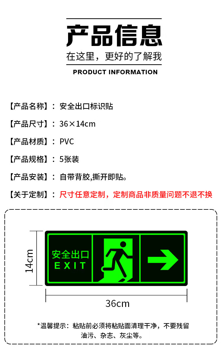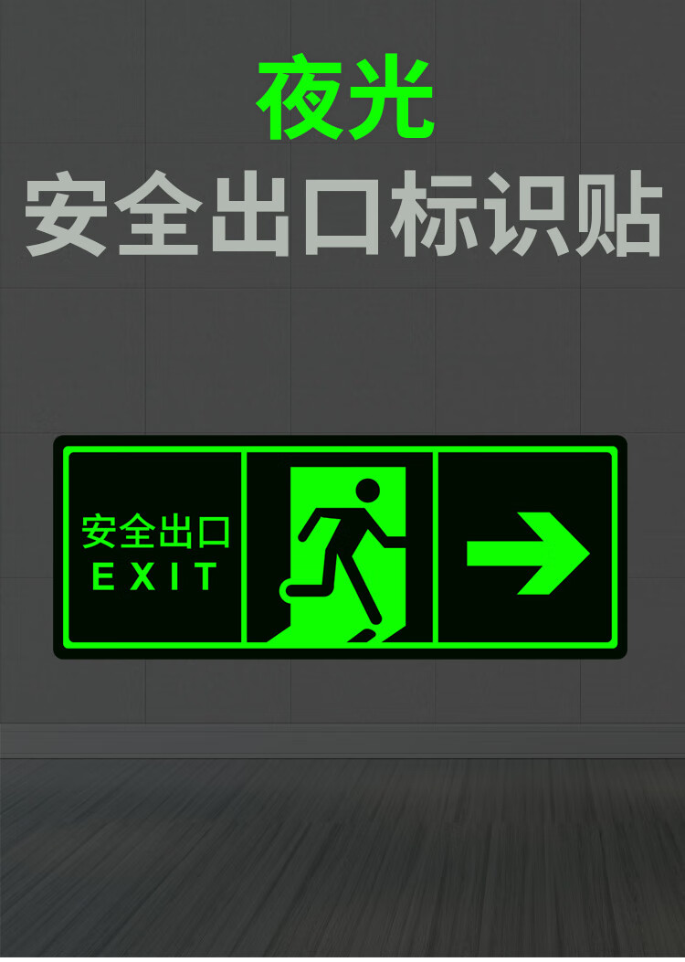 Yinchuanhui safety exit left direction sign luminous sticker fire emergency emergency evacuation sign 14*36CM self-illuminating 5 sheets