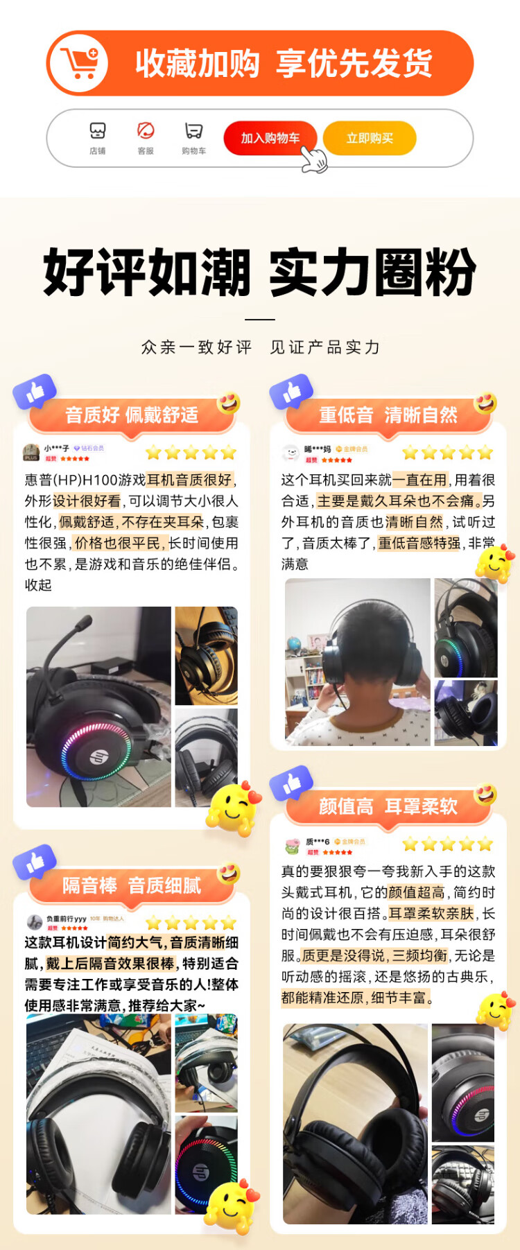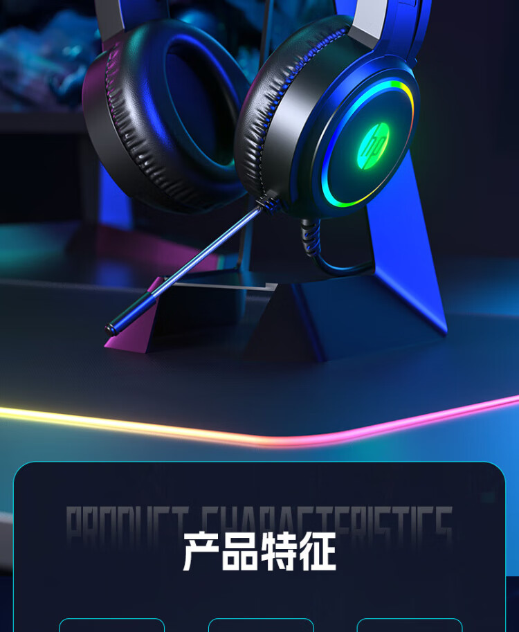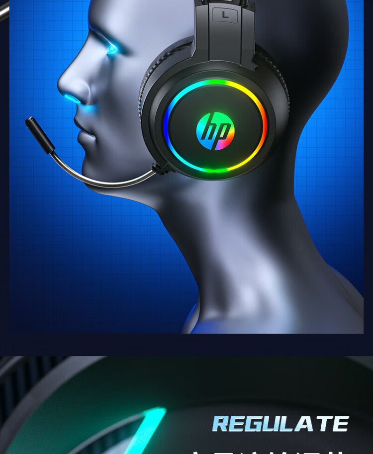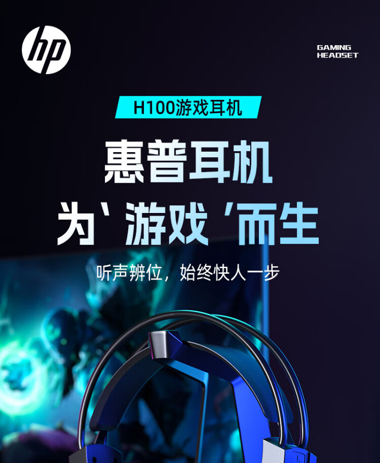 HP H100 Gaming Headset Headset with Microphone E-Sports Game Chicken Delta Action Hearing and Positioning Black USB