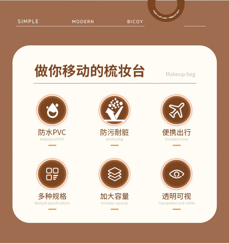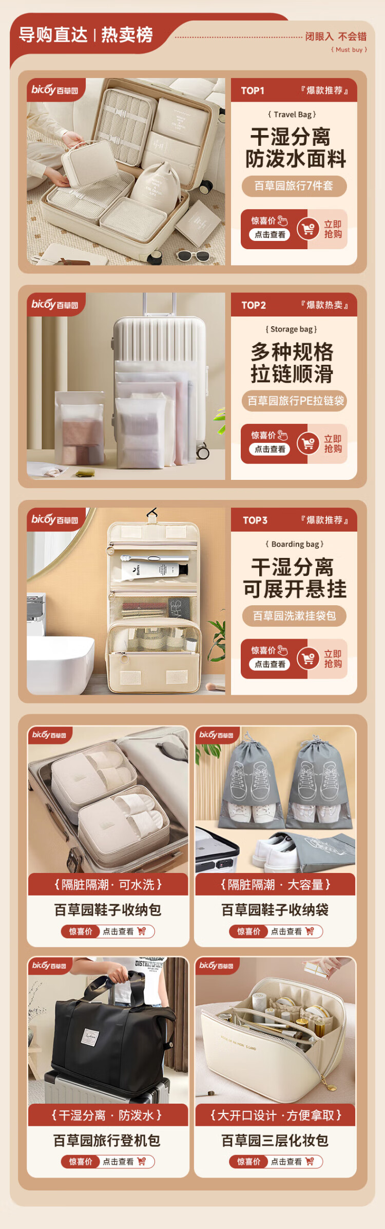 Baicaoyuan toiletry storage bag large capacity cosmetic bag portable waterproof storage bag business trip toiletry bag single layer medium size