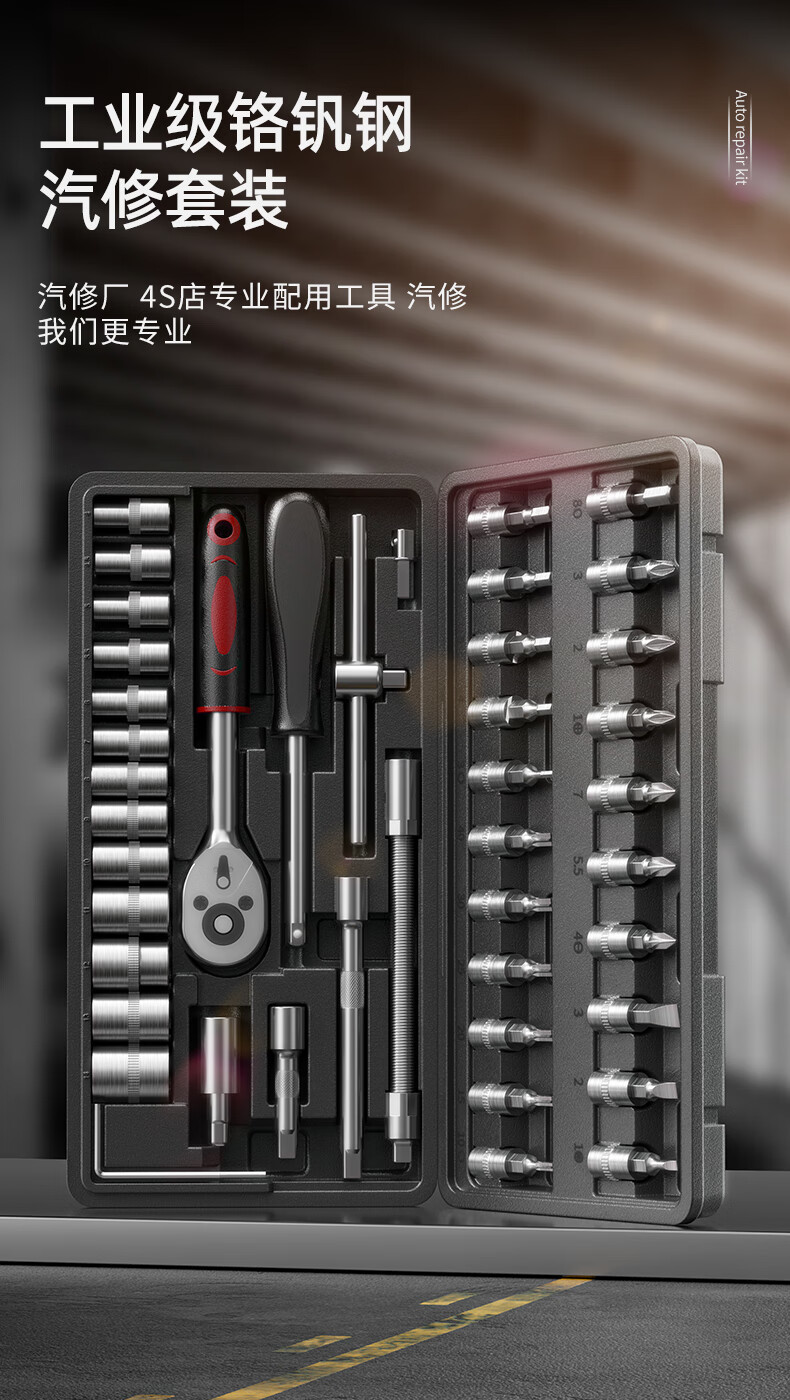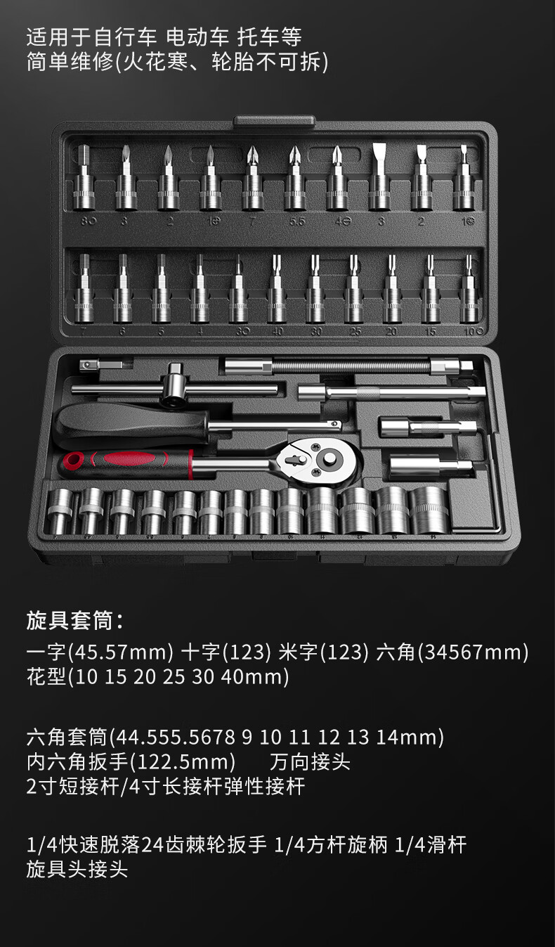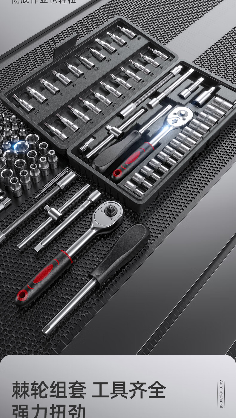 OLED 46-piece auto repair tool set, socket wrench, ratchet wrench, full set of small flying set, motorcycle repair tool box