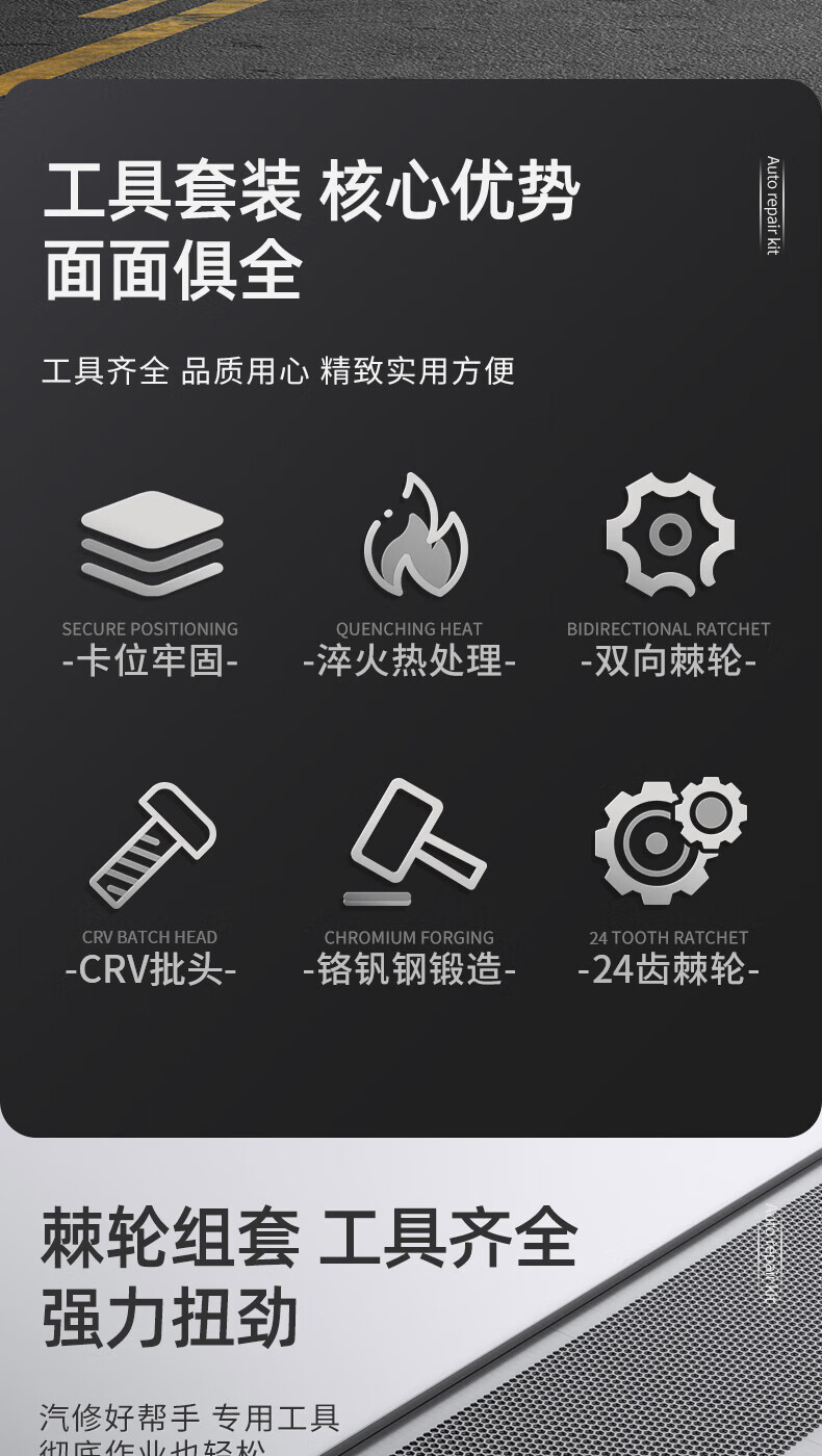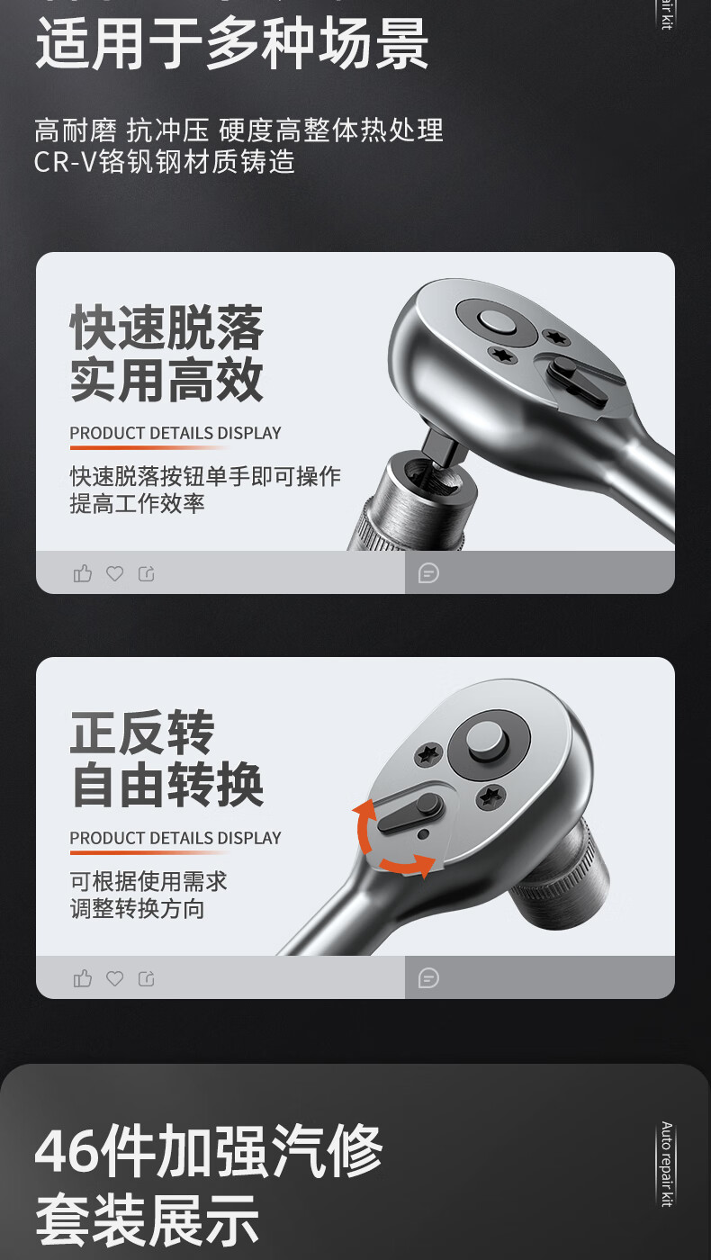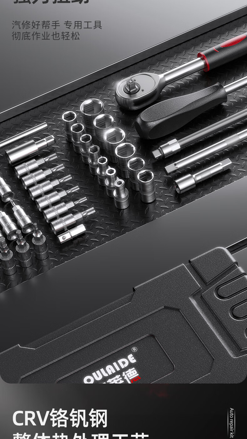 OLED 46-piece auto repair tool set, socket wrench, ratchet wrench, full set of small flying set, motorcycle repair tool box