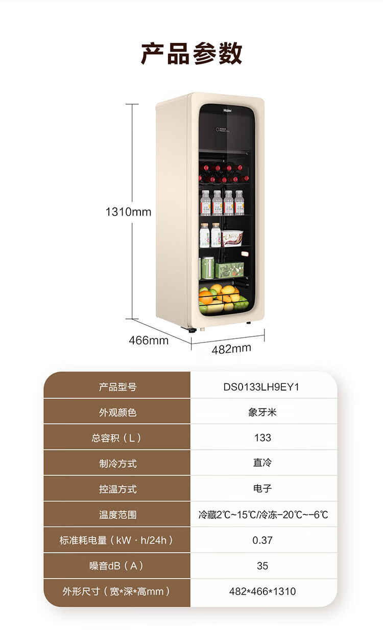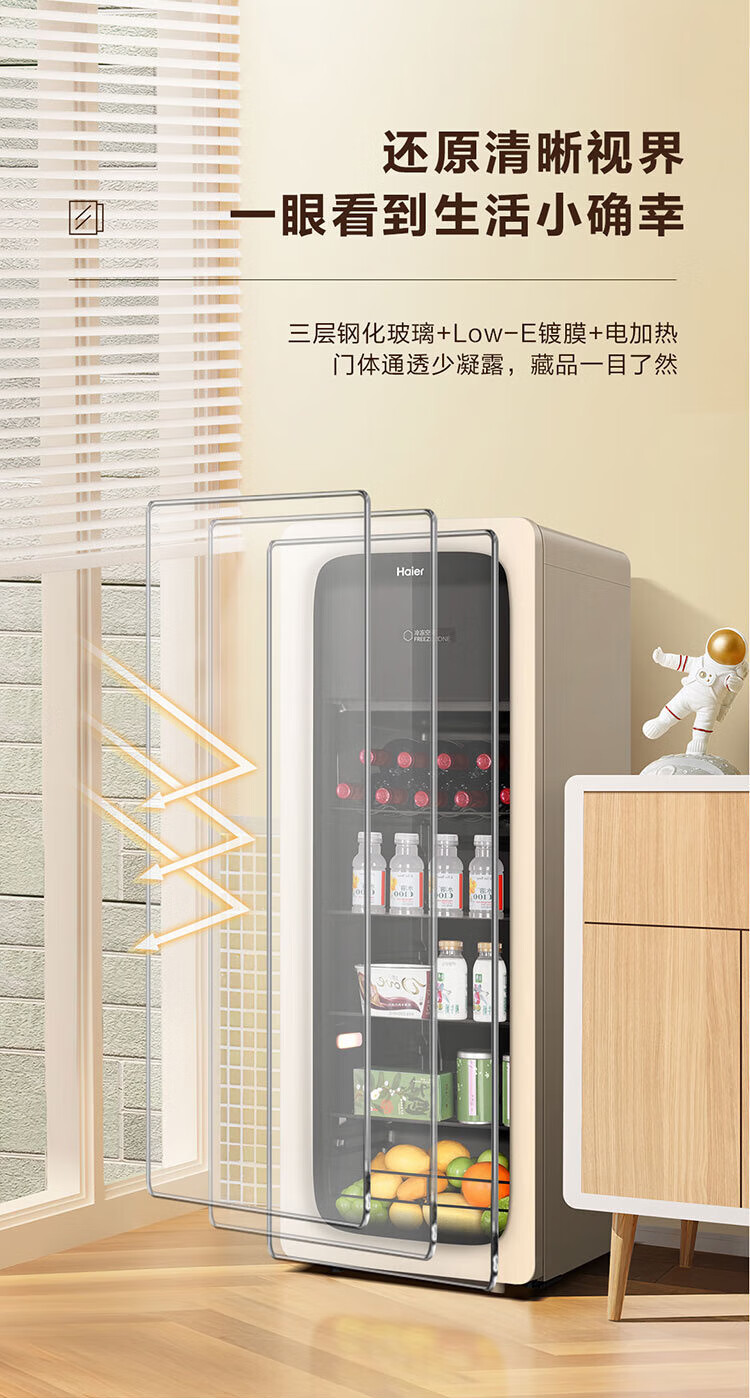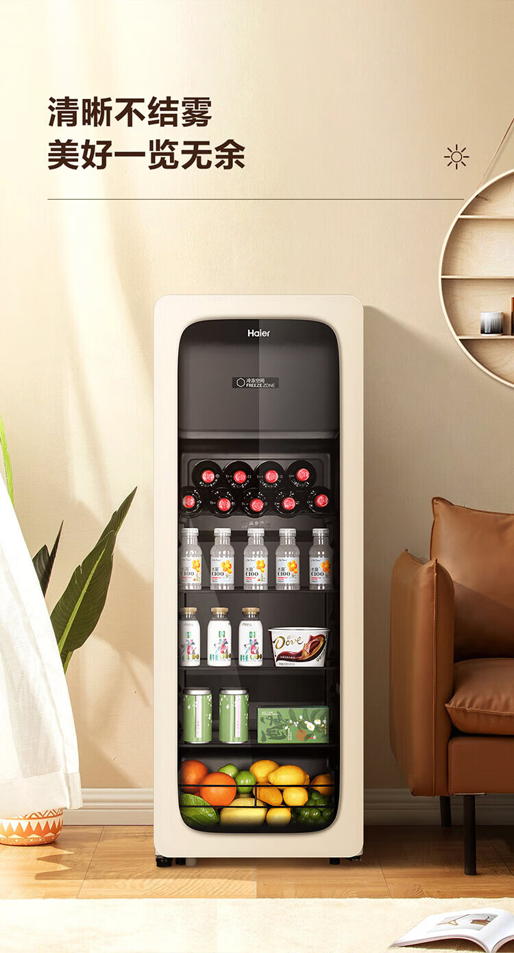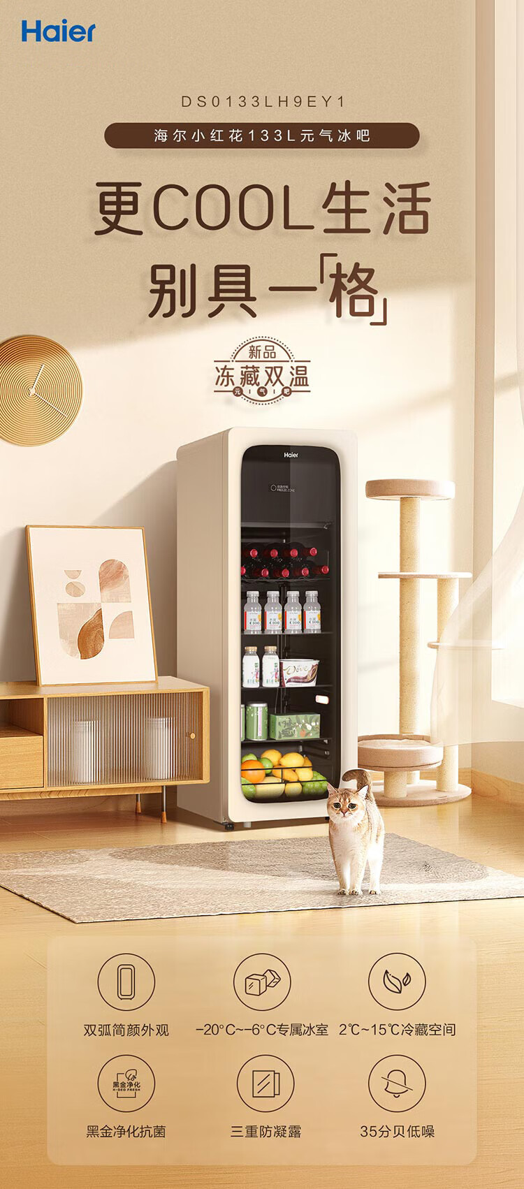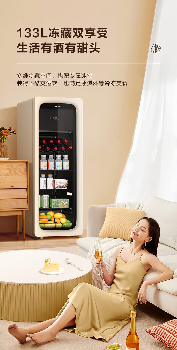 Haier Little Red Flower Set-133L Dual Temperature Yuanqi Ice Bar Home Living Room Tea Refrigerator Fresh Cabinet Office Small Refrigerator Large Capacity Beverage Display DS0133LH9EY1