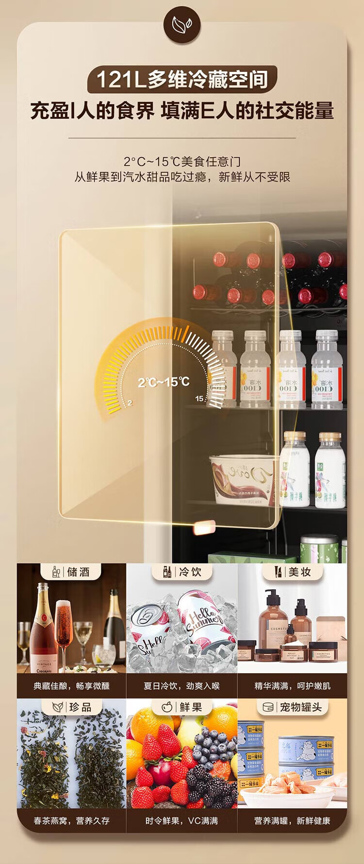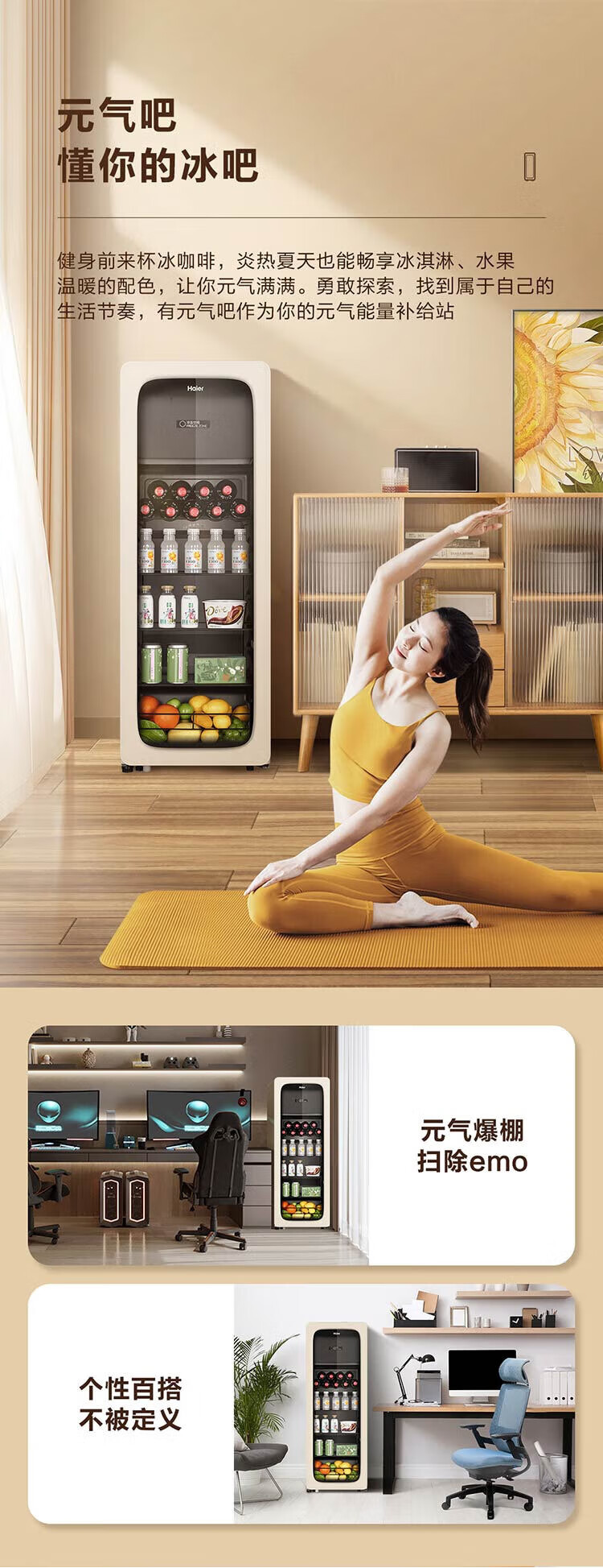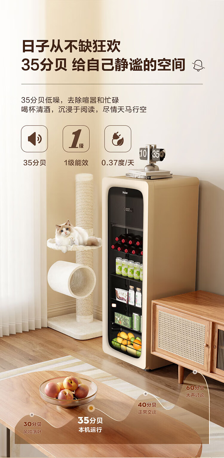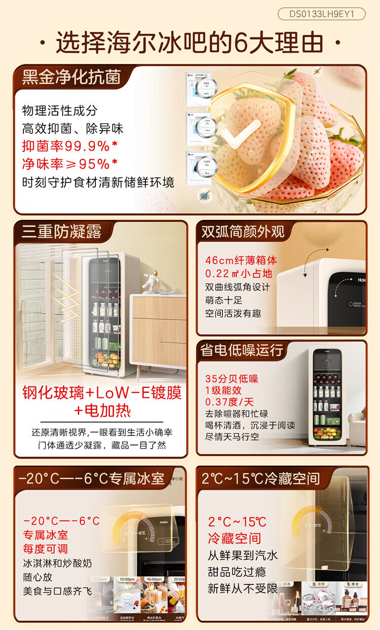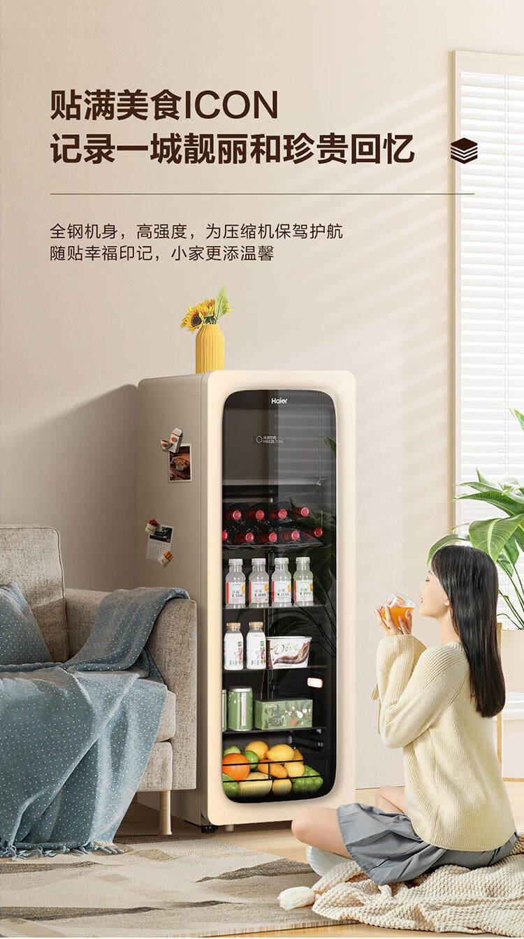 Haier Little Red Flower Set-133L Dual Temperature Yuanqi Ice Bar Home Living Room Tea Refrigerator Fresh Cabinet Office Small Refrigerator Large Capacity Beverage Display DS0133LH9EY1