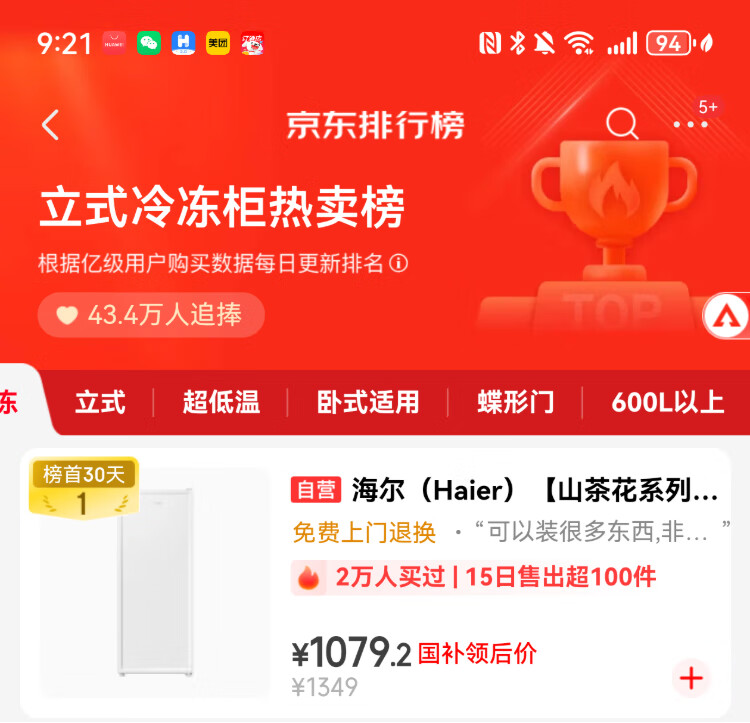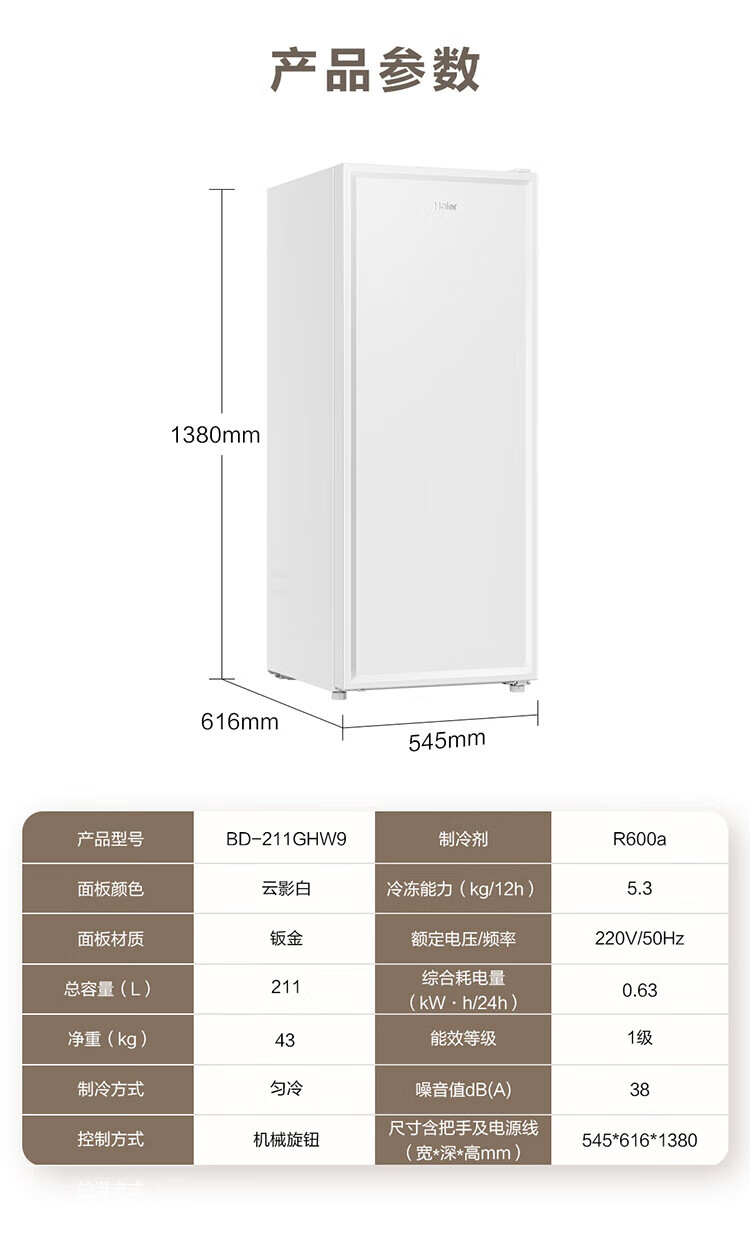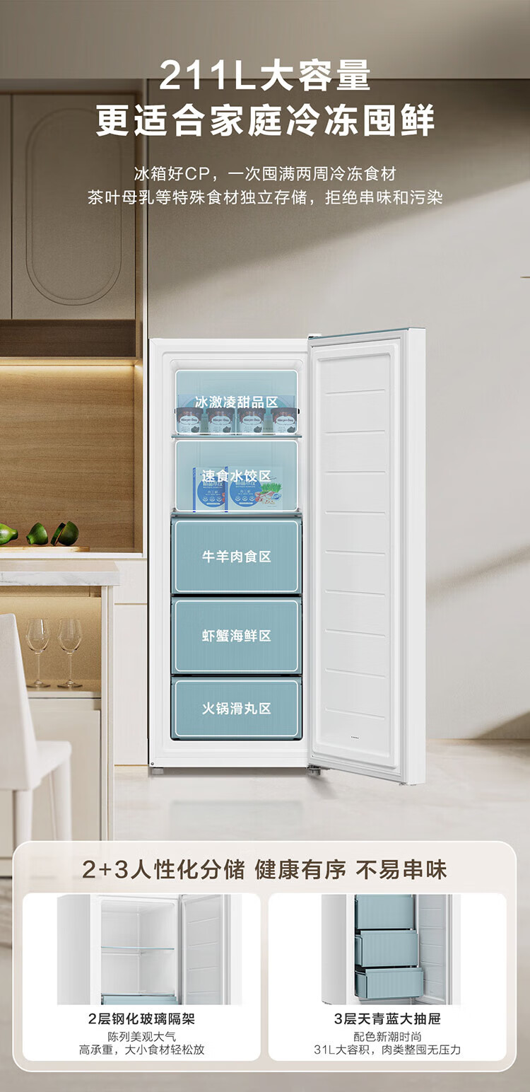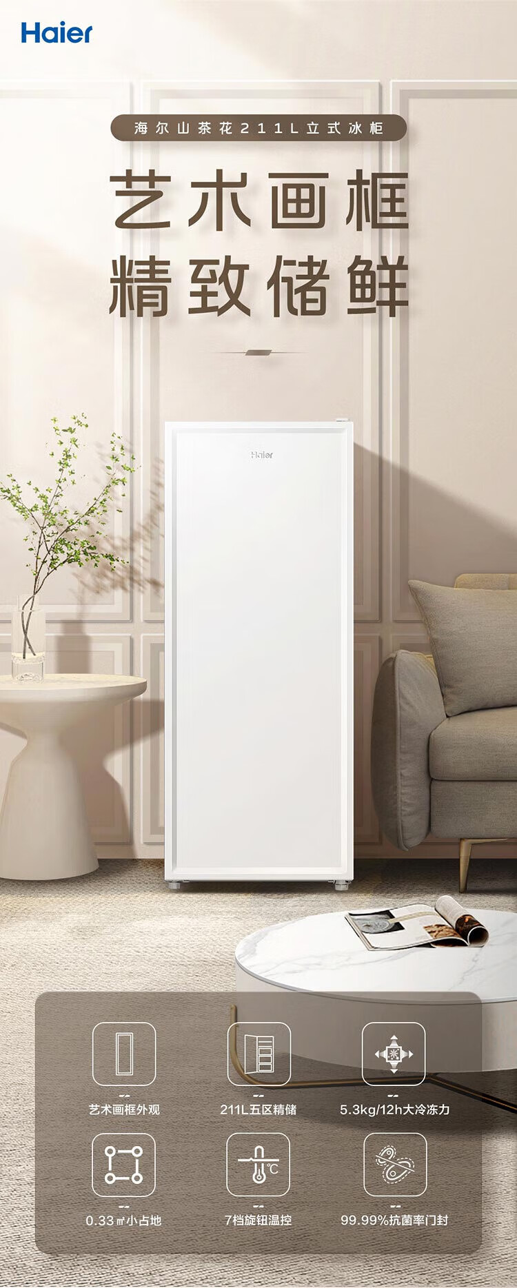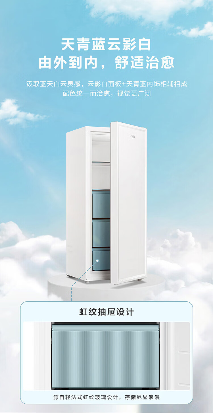 Haier Camellia series 211 liter household vertical freezer breast milk rental drawer type freezer freezer small refrigerator small freezer household BD-211GHW9 national subsidy