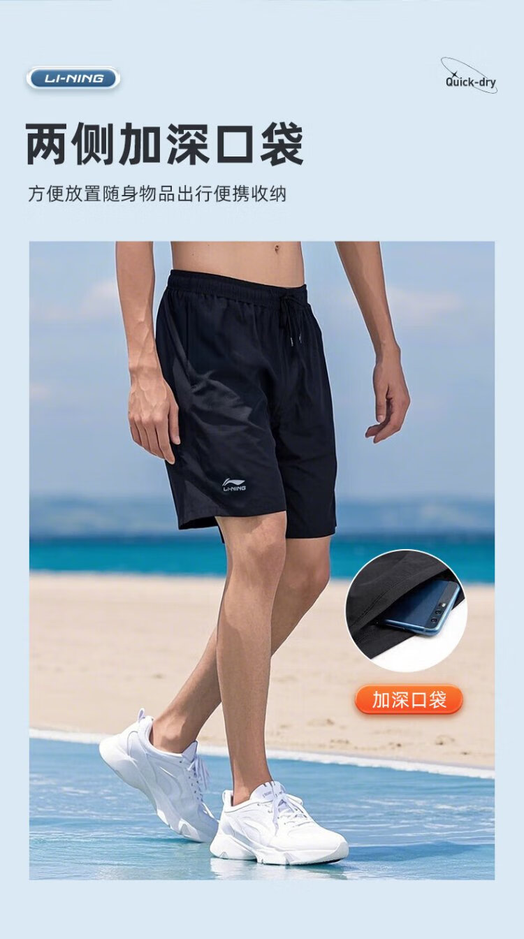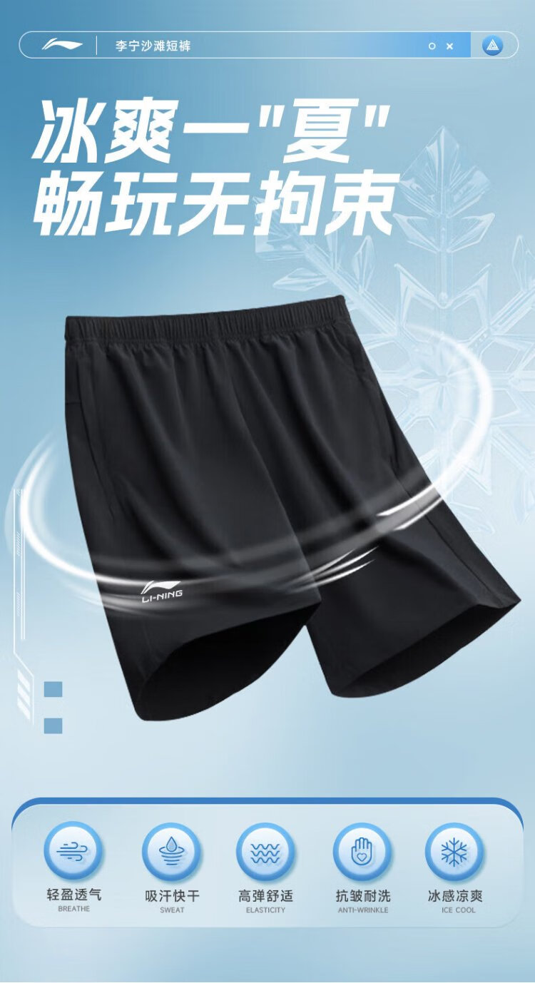 Li Ning (LI-NING) sports shorts men's summer breathable thin loose casual outdoor quick-drying running fitness ice silk five-point pants