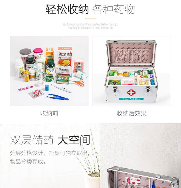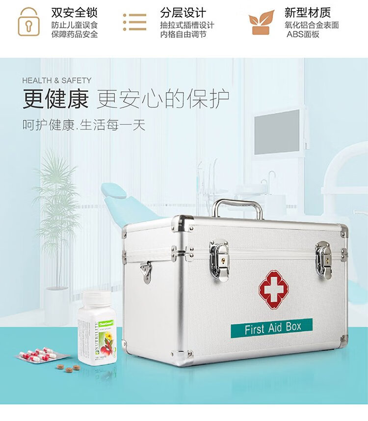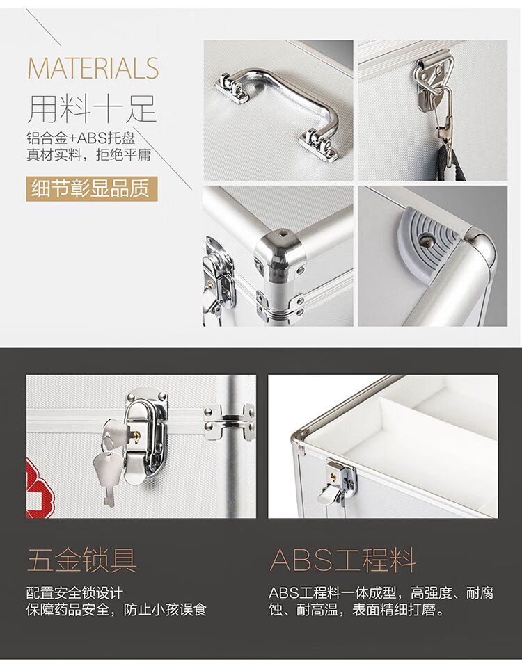 Jinlongxing aluminum alloy household medicine box small medicine box first aid medicine storage box box with lock medical box set