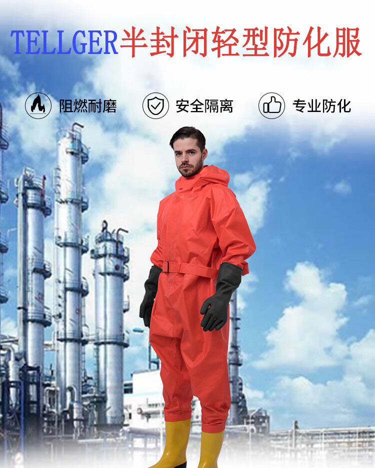 TELLGER/TELLGER semi-enclosed light chemical protective clothing PVC one-piece acid and alkali resistant chemical anti-virus clothing raw secondary protective clothing thickened one-size-fits-all 42 size boots