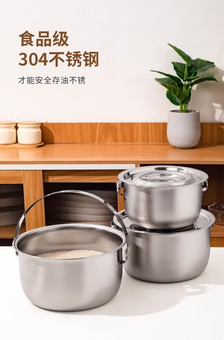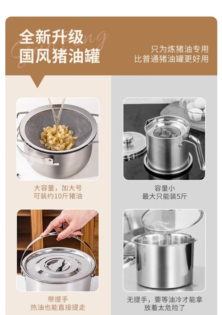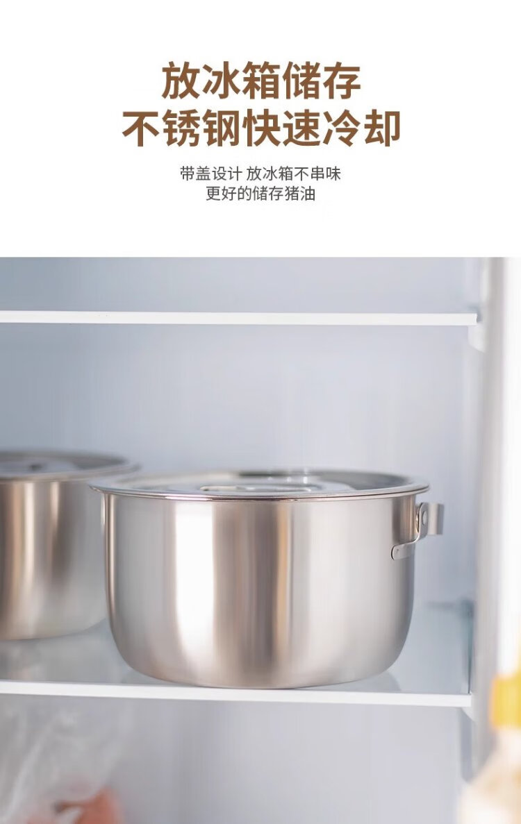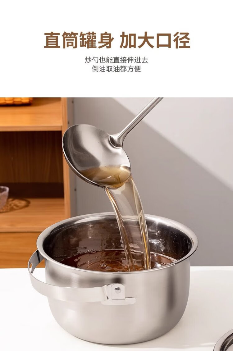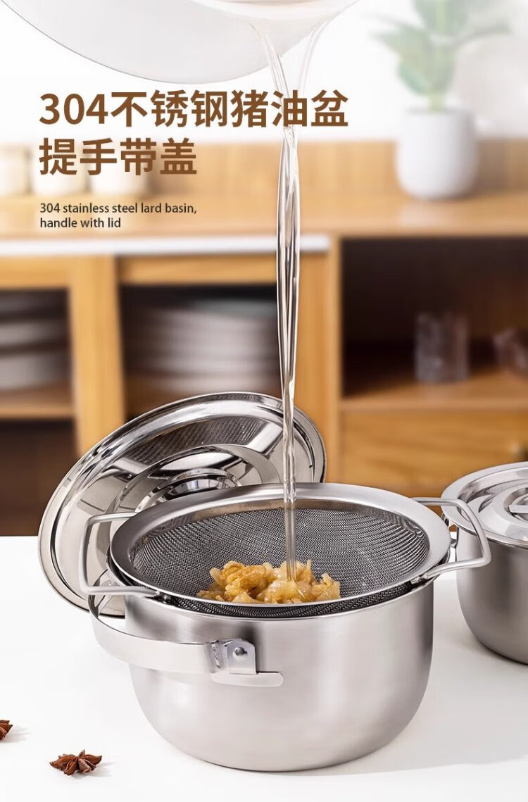 Guofeng 304 stainless steel lard tank, oil pot, lard basin, oil tank, high temperature resistance, large capacity (filter + cover) 1.4L