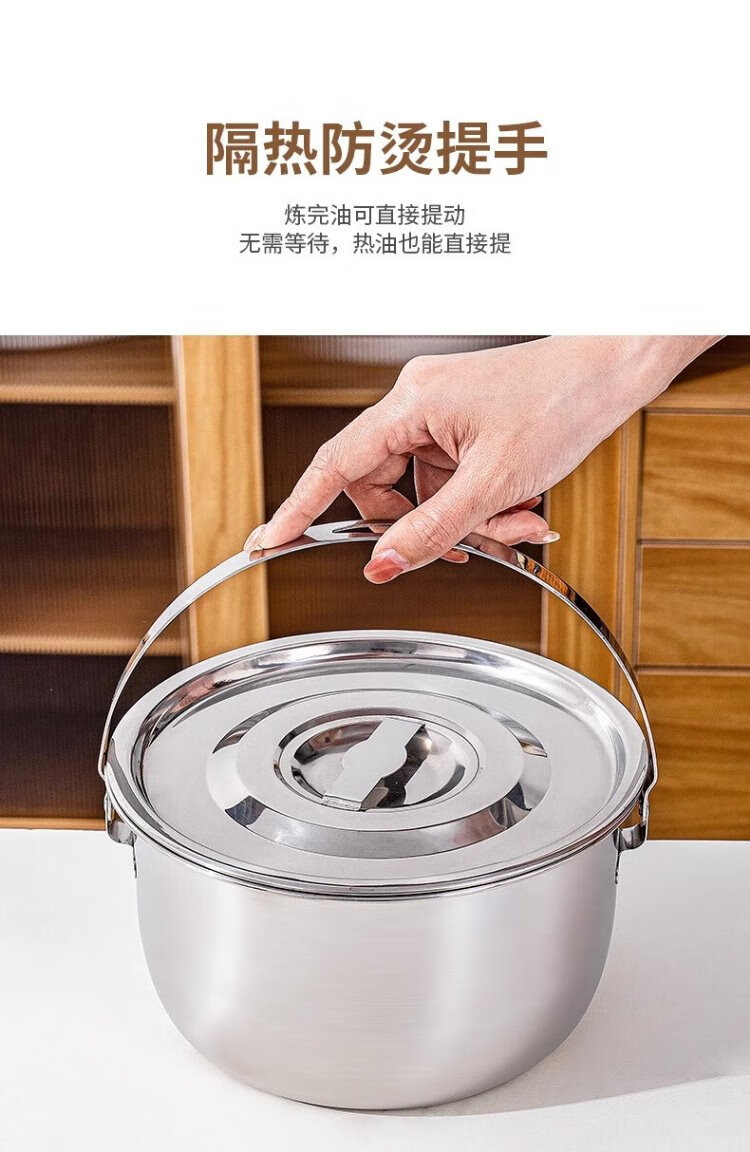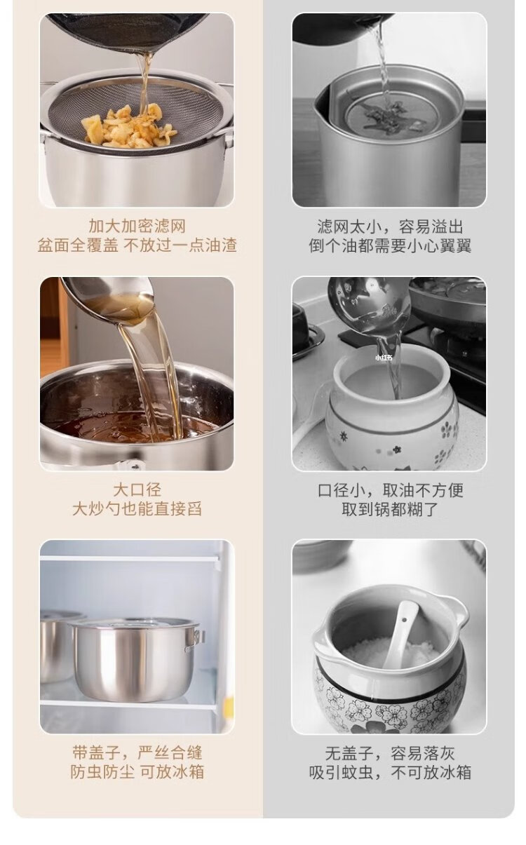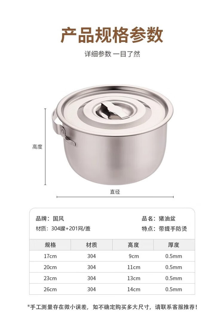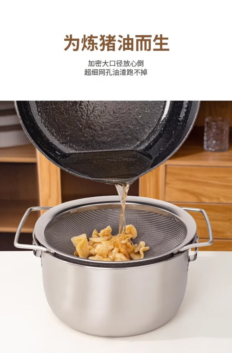 Guofeng 304 stainless steel lard tank, oil pot, lard basin, oil tank, high temperature resistance, large capacity (filter + cover) 1.4L
