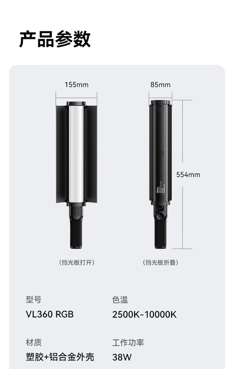 Ulanzi excellent basket VL360 RGB handheld stick light full-color LED fill light stick 38W ultra-bright adjustable color temperature live broadcast beauty lighting portable outdoor always bright soft light