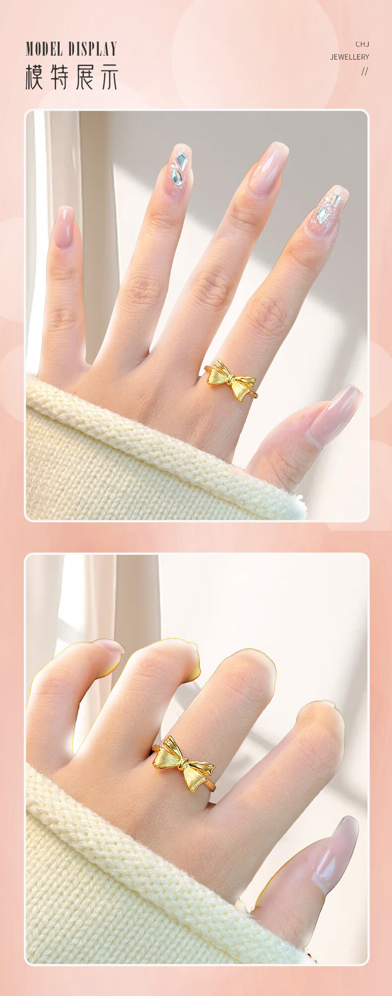 Trendy Acer Romantic Bow Pure Gold Hard Gold Ring Women's Bracelet for Girlfriend Birthday Gift Women's No. 13
