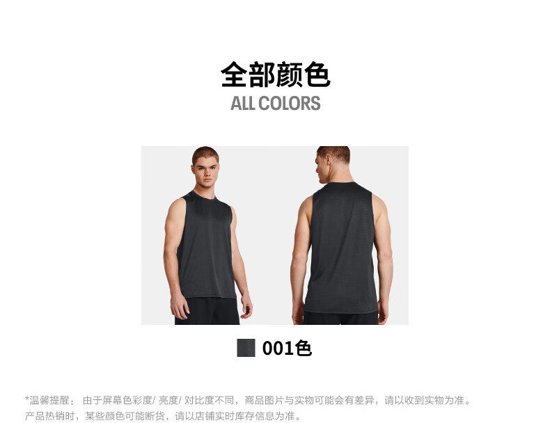 UNDERARMOR Spring and Summer Tech Vent Men's Training Sports Vest 1384290 Black 001 XL