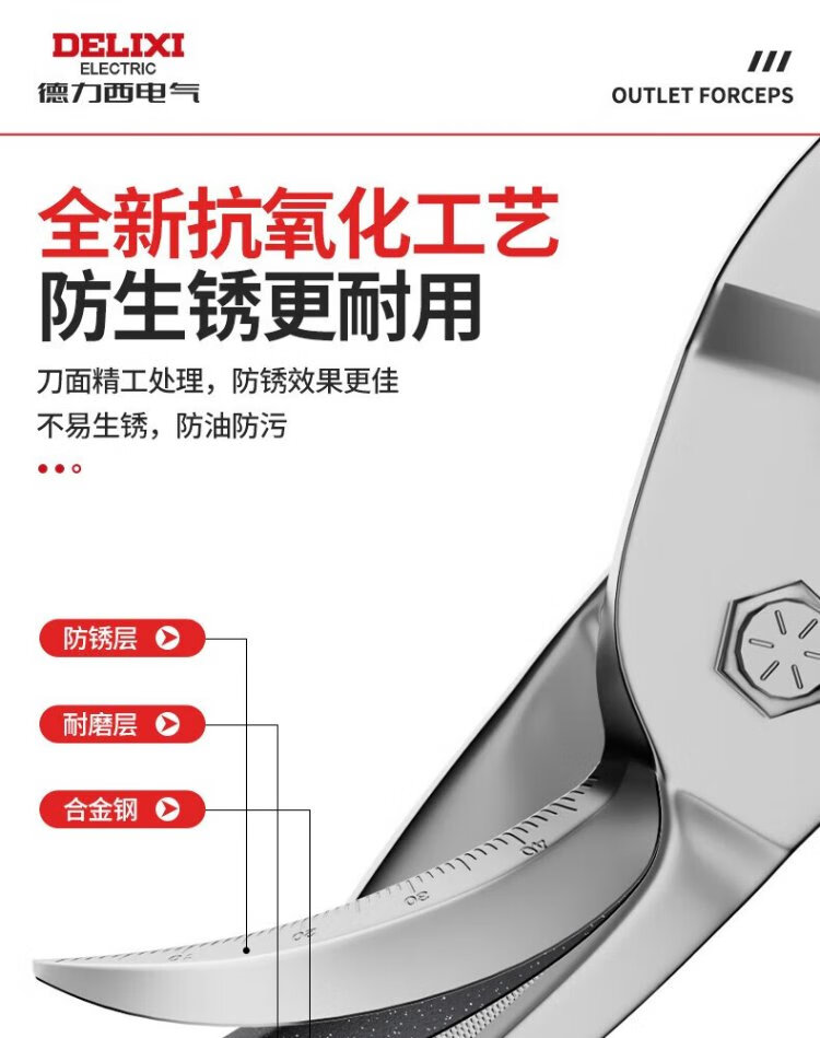 DELIXI ELECTRIC iron scissors industrial light steel keel aviation scissors aluminum gusset stainless steel scissors 10-inch straight aviation scissors
