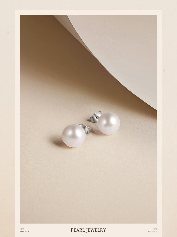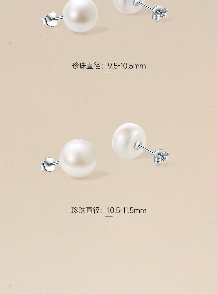 Saturday Fortune S925 silver pearl earrings birthday gift women's steamed bun beads 9.5-10.5mm