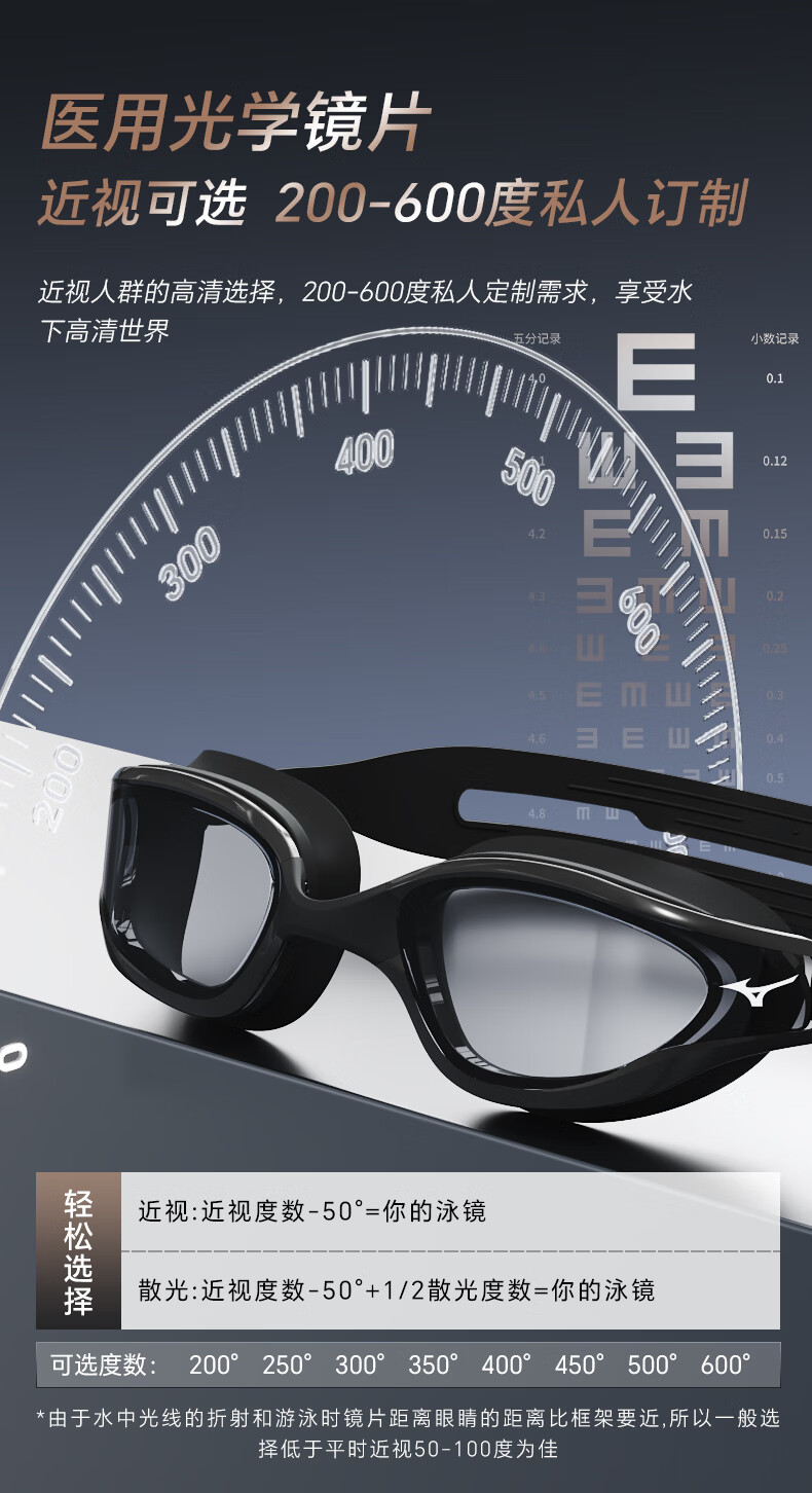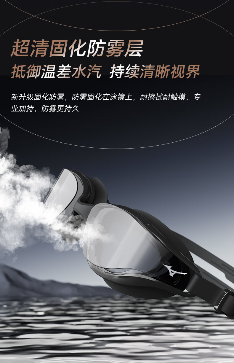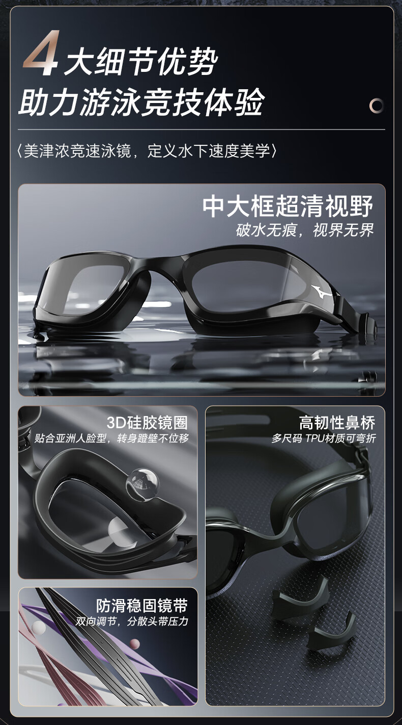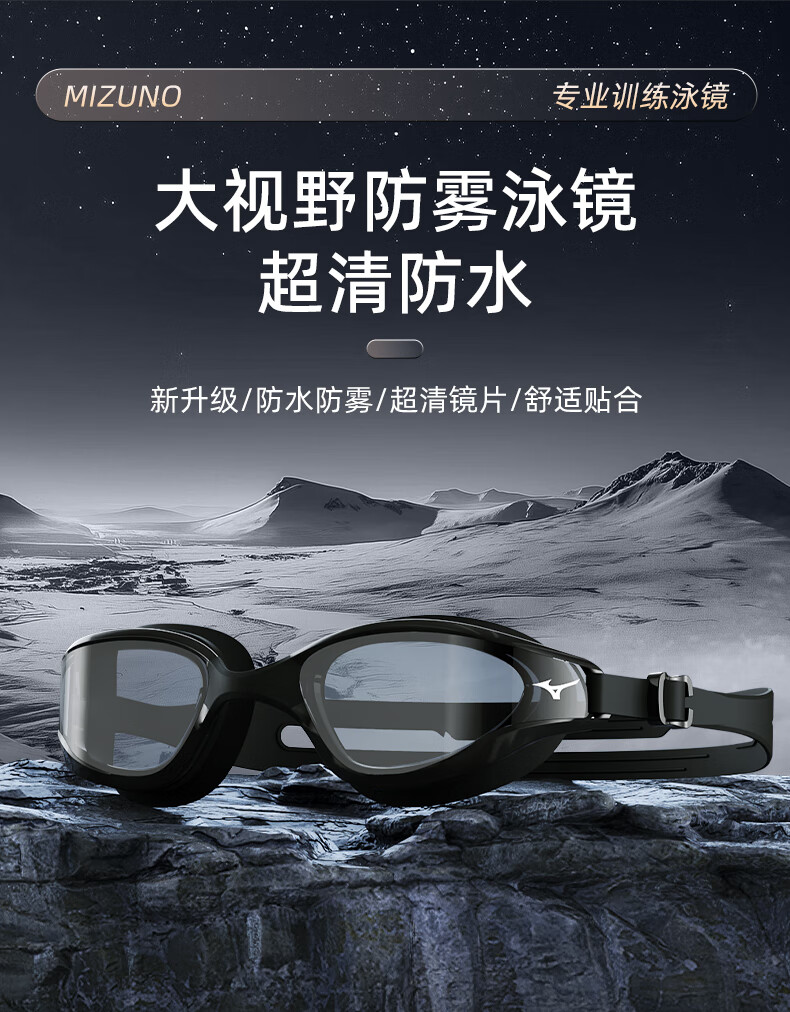 Mizuno (MIZUNO) swimming goggles men's adult swimming goggles myopia professional anti-fog high-definition waterproof women's large-frame swimming goggles B050 black