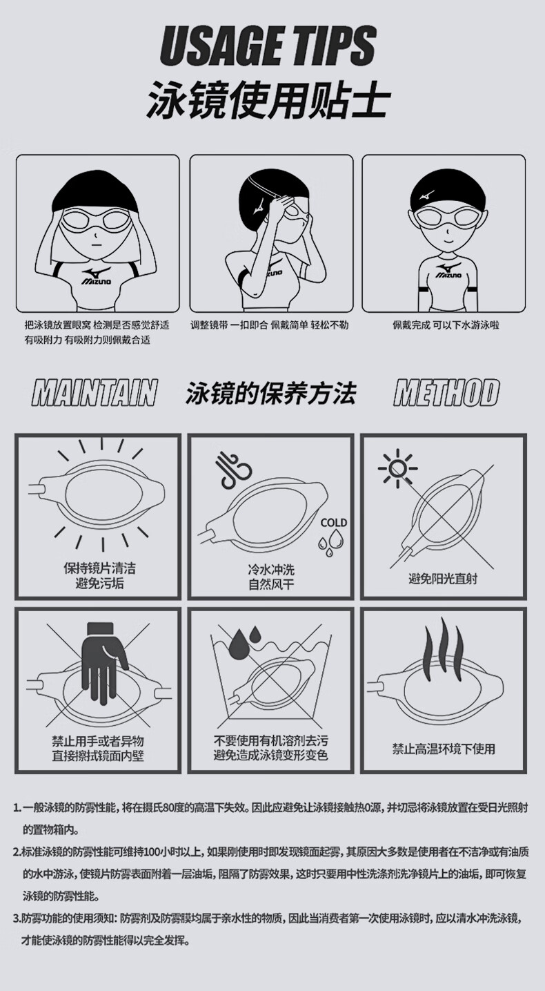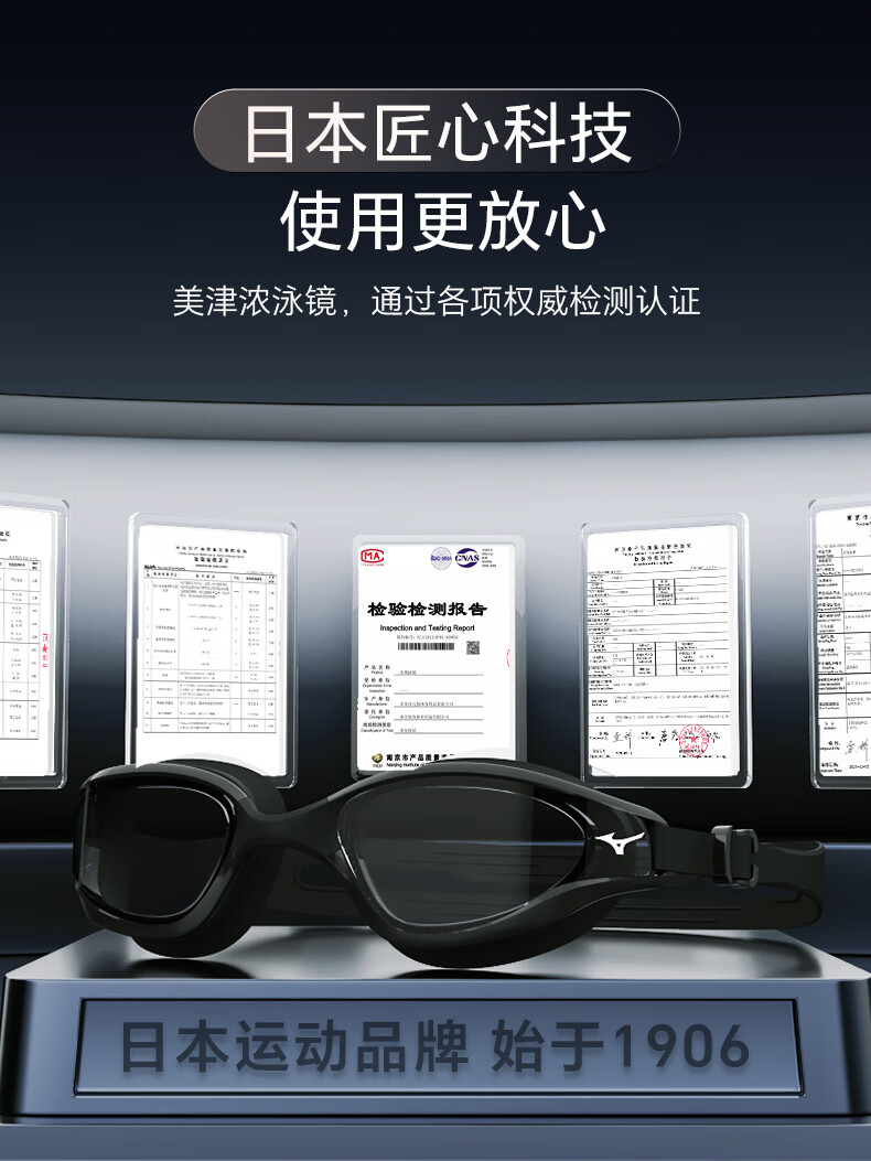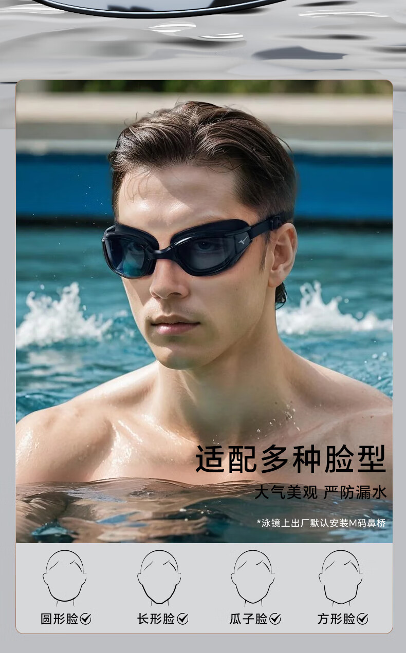 Mizuno (MIZUNO) swimming goggles men's adult swimming goggles myopia professional anti-fog high-definition waterproof women's large-frame swimming goggles B050 black