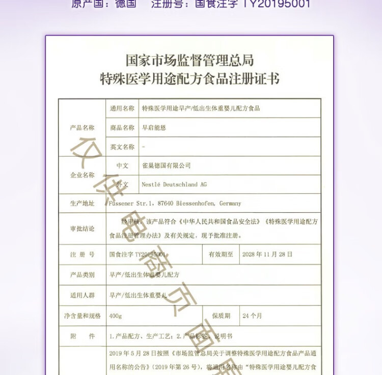 Nestle Zaoqi Nengen special formula milk powder for premature and low-weight infants 400g