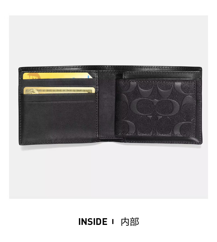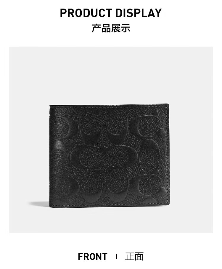 COACH brand direct supply men's short folding cow leather wallet card holder black CR957