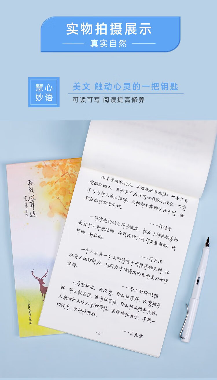 Wanling Wen Yun Xing Kai Calligraphy Copybook is the best selection of beautiful articles. Autumn wind blows through the ears, copying copybook, hard-pen calligraphy practice, university boys and girls handwriting font copying, quick entry to connected calligraphy.