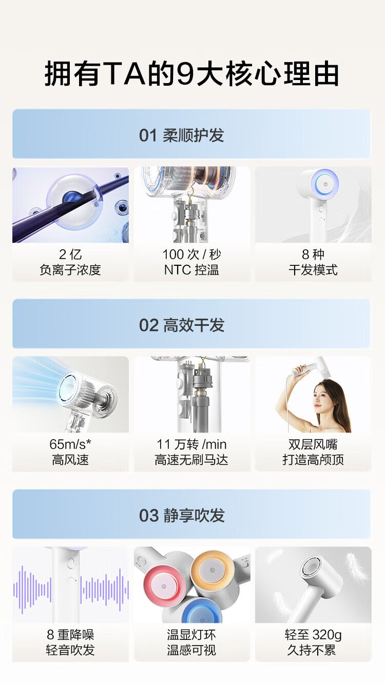 Made in Tokyo, smart high-speed hair dryer Lite white negative ion hair dryer home silent high-power does not hurt hair dormitory hair dryer boys birthday gift women
