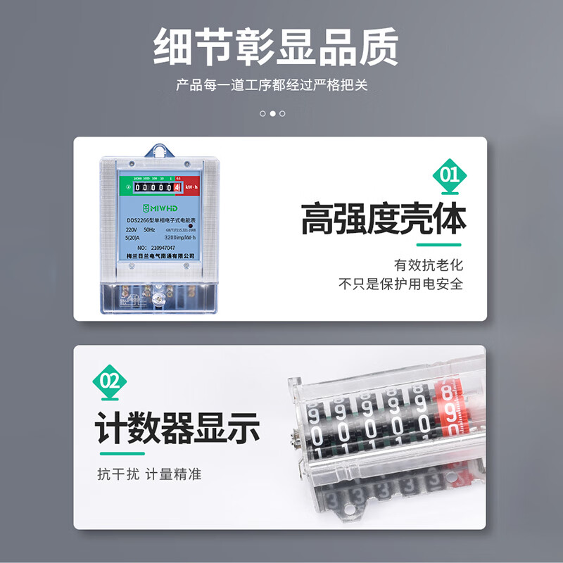 MIWHD single-phase transparent electricity meter rental house household electricity meter DDS2266 220V 40A