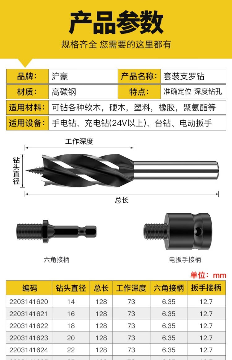 HUHAO Zhiluo drill drilling tool plastic wood board hole opener tool hexagonal handle extended woodworking drill bit collection
