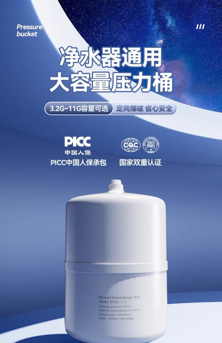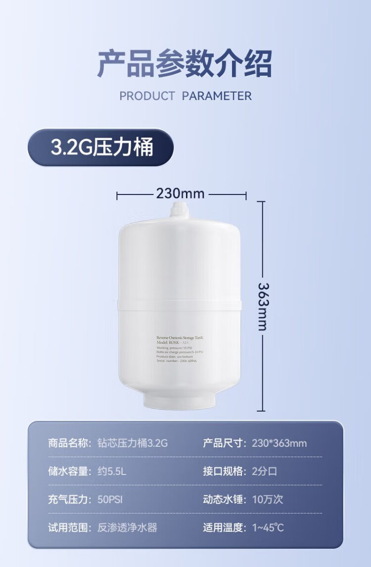 Drill core water purifier pressure barrel 3.2G household commercial water storage tank direct drinking RO pure water machine universal accessories