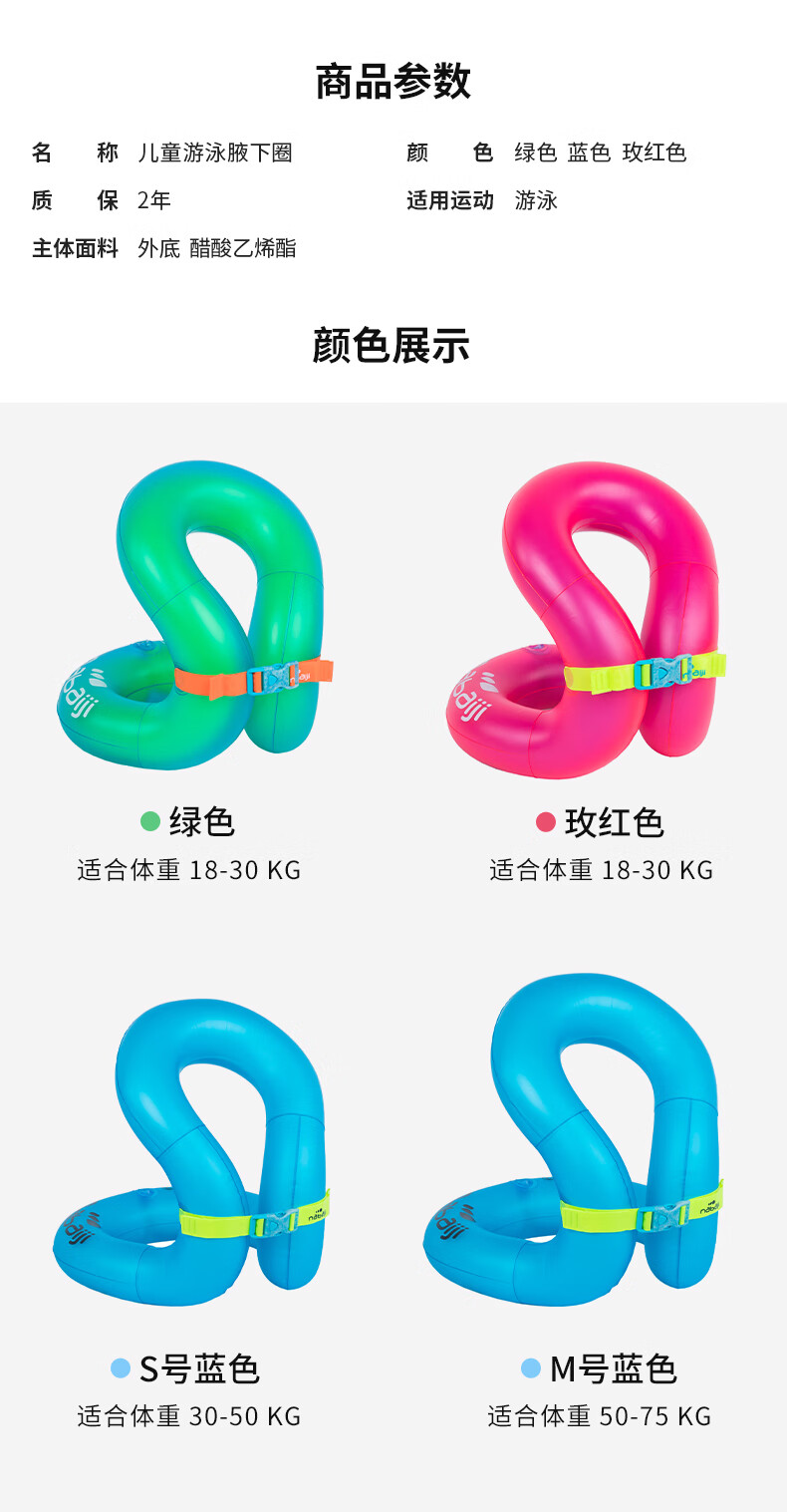 Decathlon (DECATHLON) children's swimming ring armpit floating ring double-layer air bag life jacket green 18-30KG694640