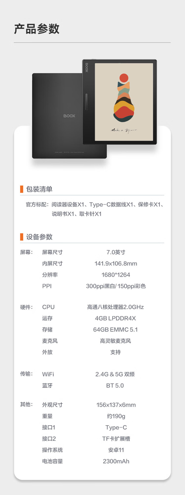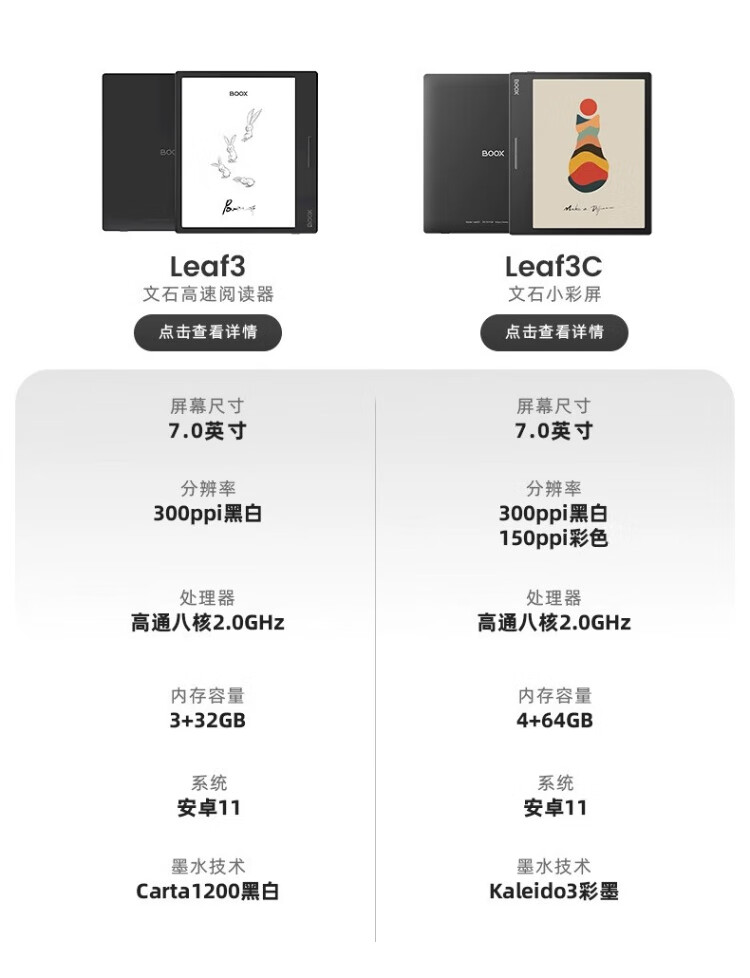 BOOX Aragonite Leaf3C 7-inch color screen e-book reader tablet color ink screen electronic paper book electronic paper portable reading tablet computer office notebook