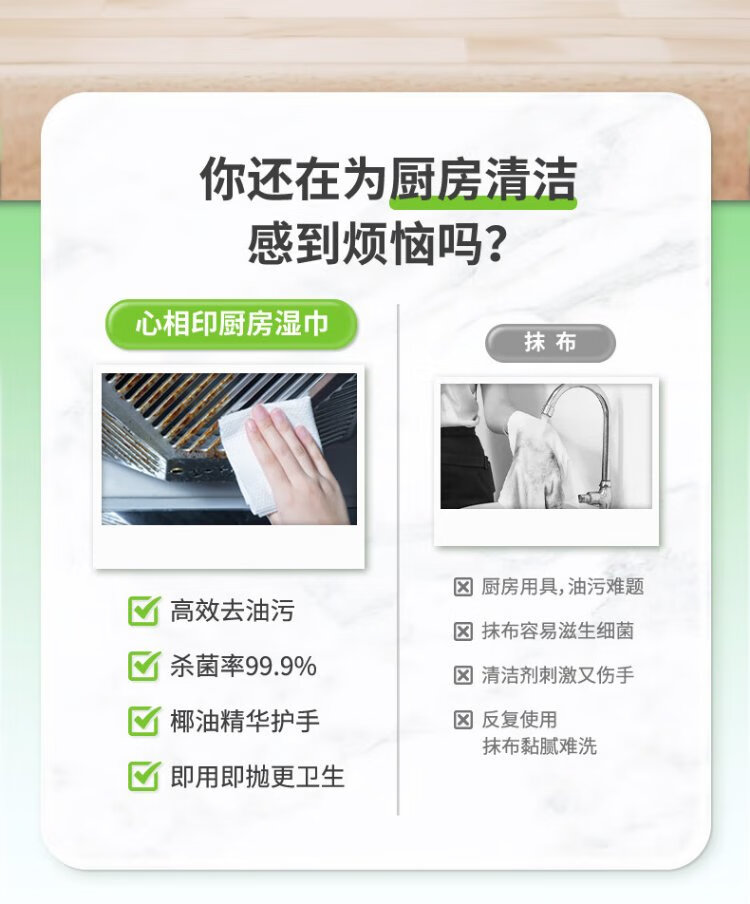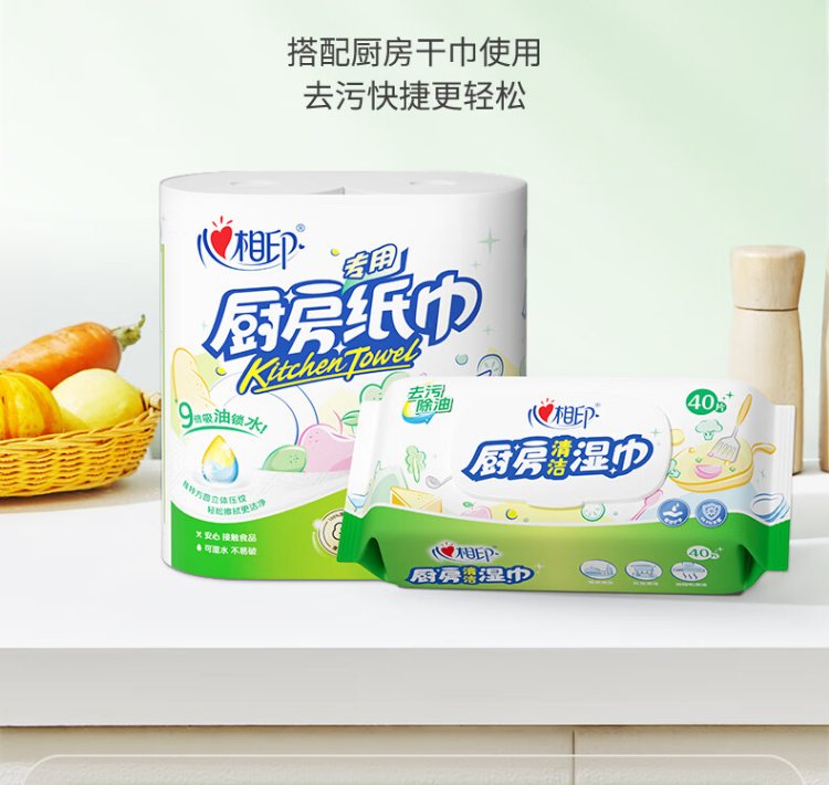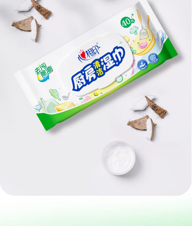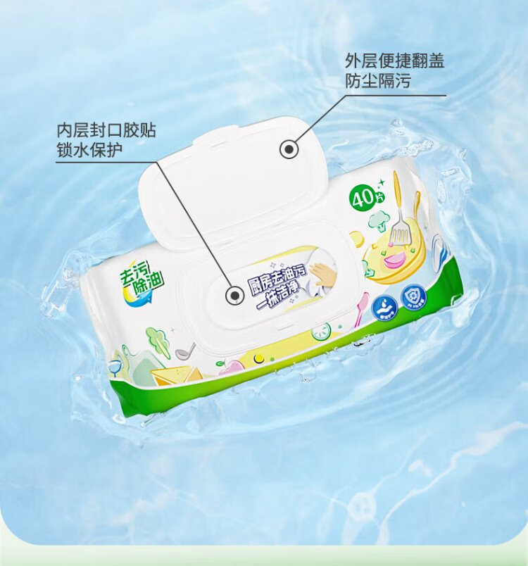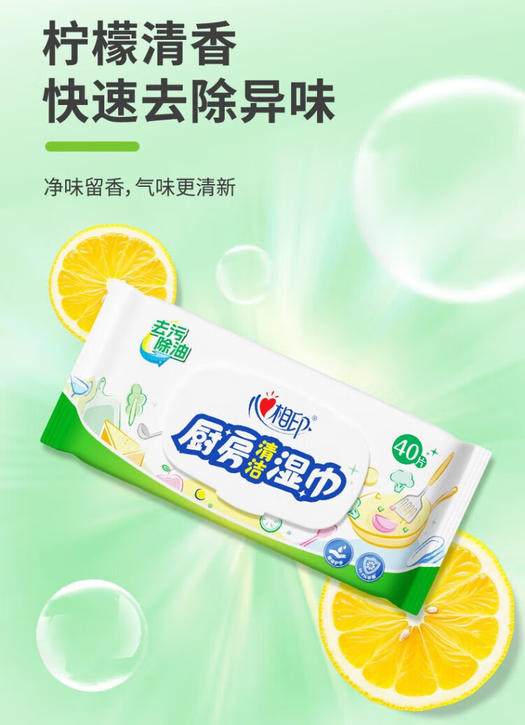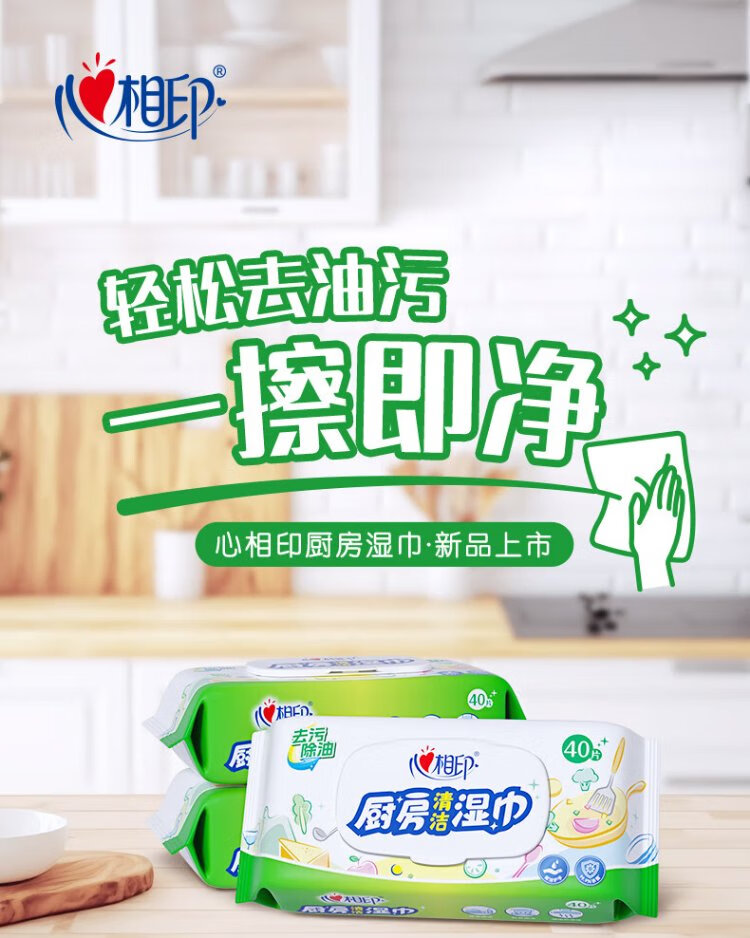心相印厨房湿巾清洁系列40片*3包组合装去污去油厨房专用湿纸巾