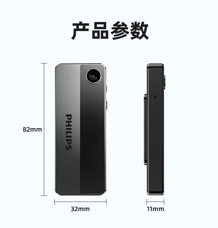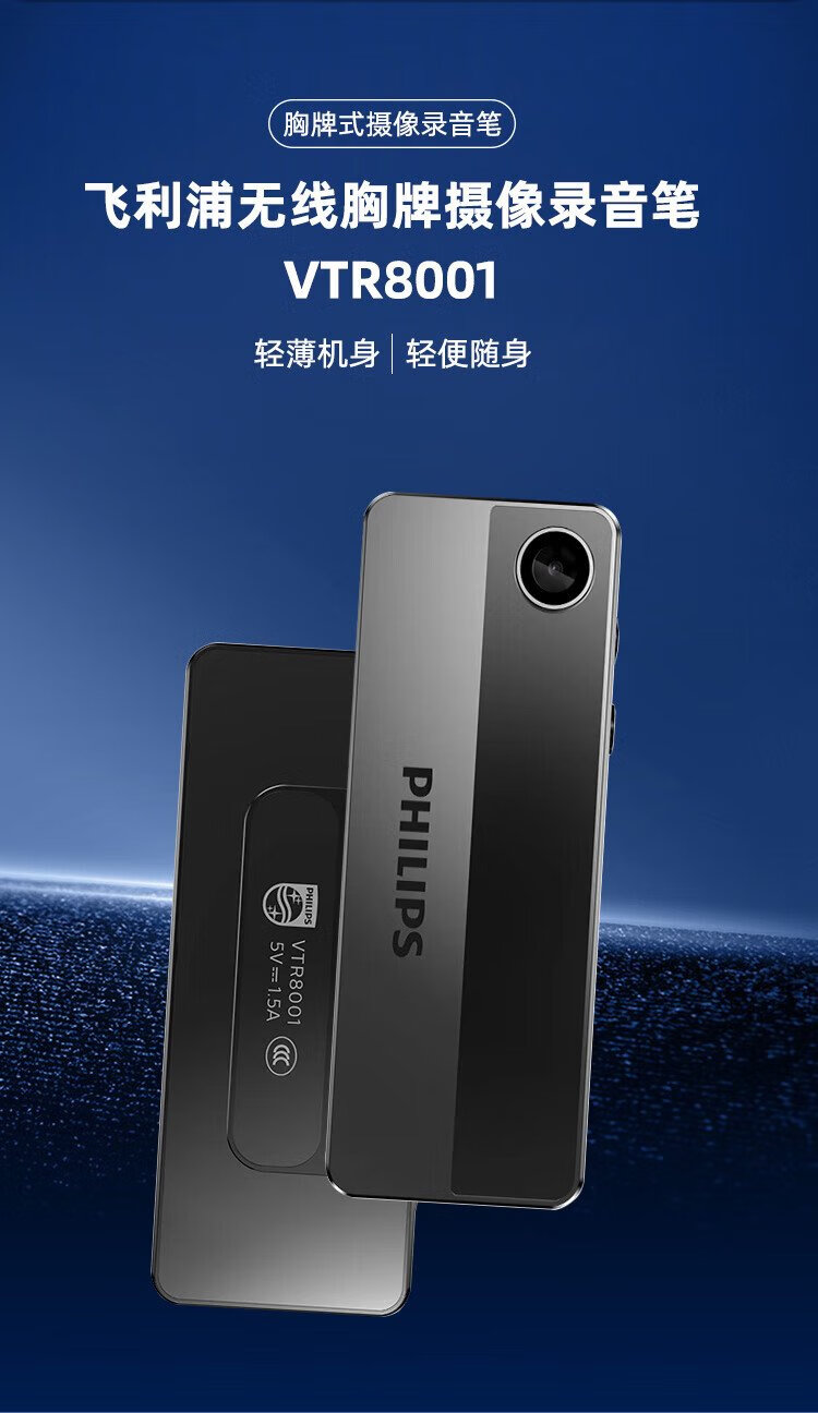 Philips (PHILIPS) clip-on chest-worn recorder VTR8001 professional audio and video pen 128G noise reduction high-definition forensics camera outdoor portable law enforcement camera and video recording equipment