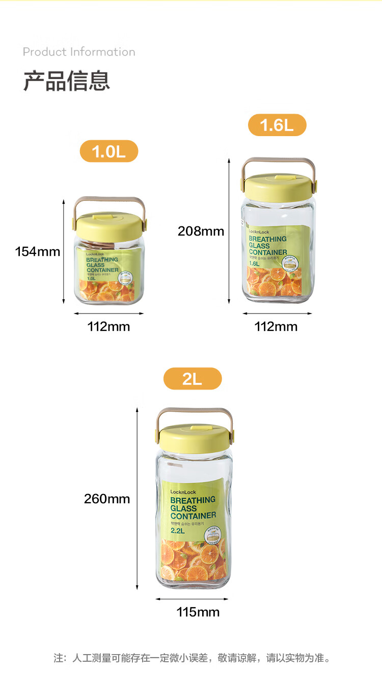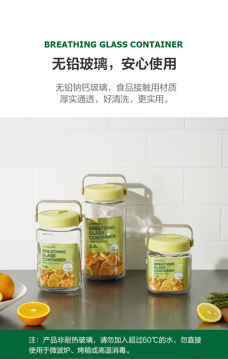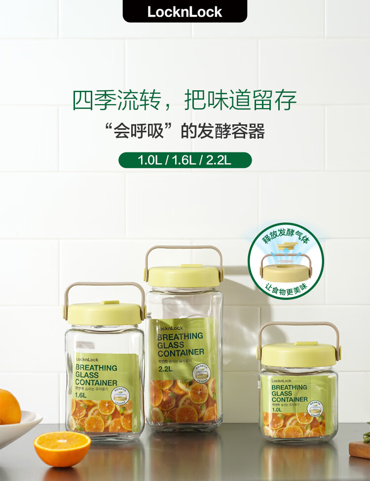 LOCK & LOCK breathing fermentation container glass storage tank wine laba garlic jam sealed jar pickle jar 1.6L green