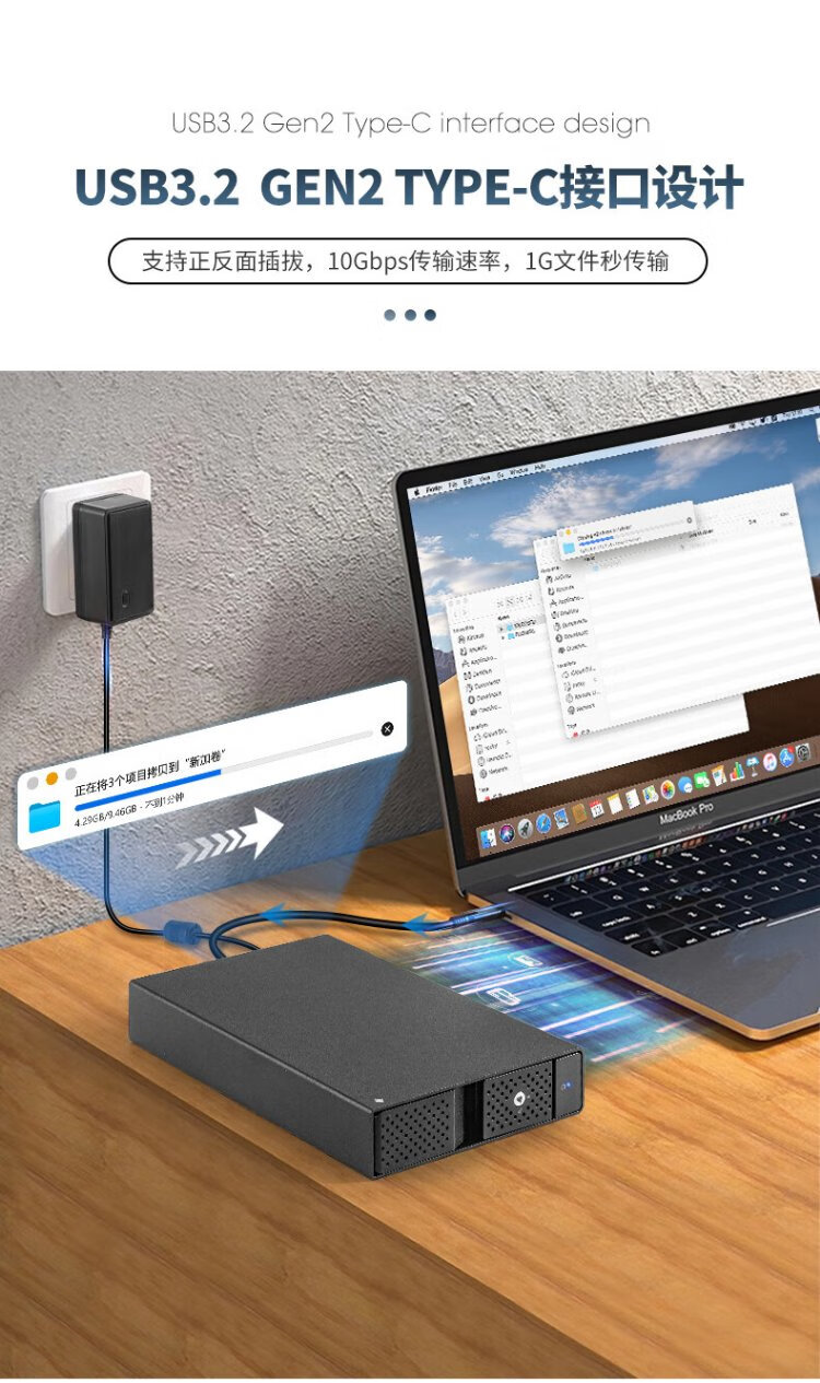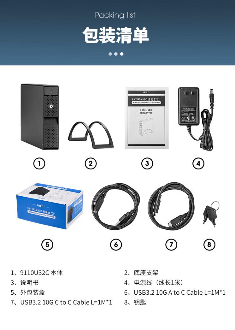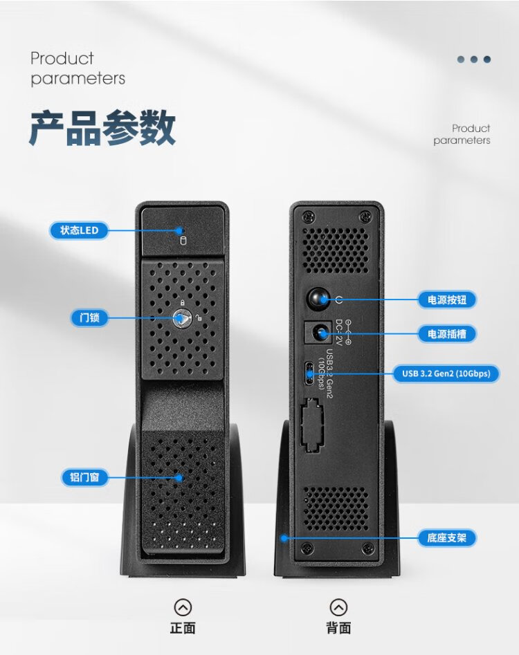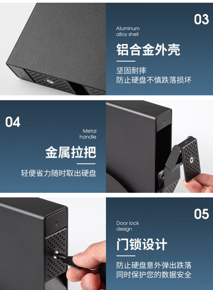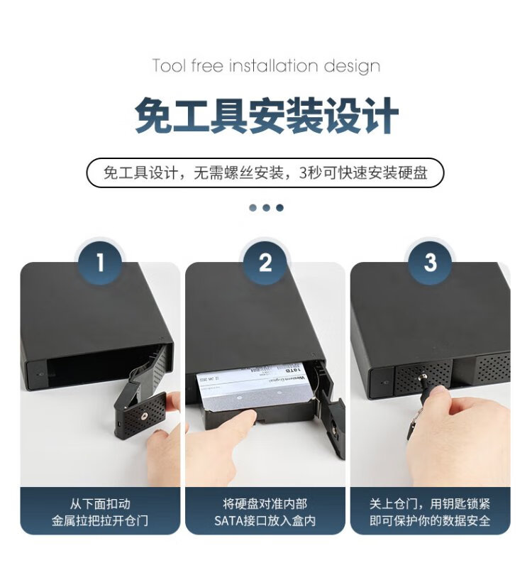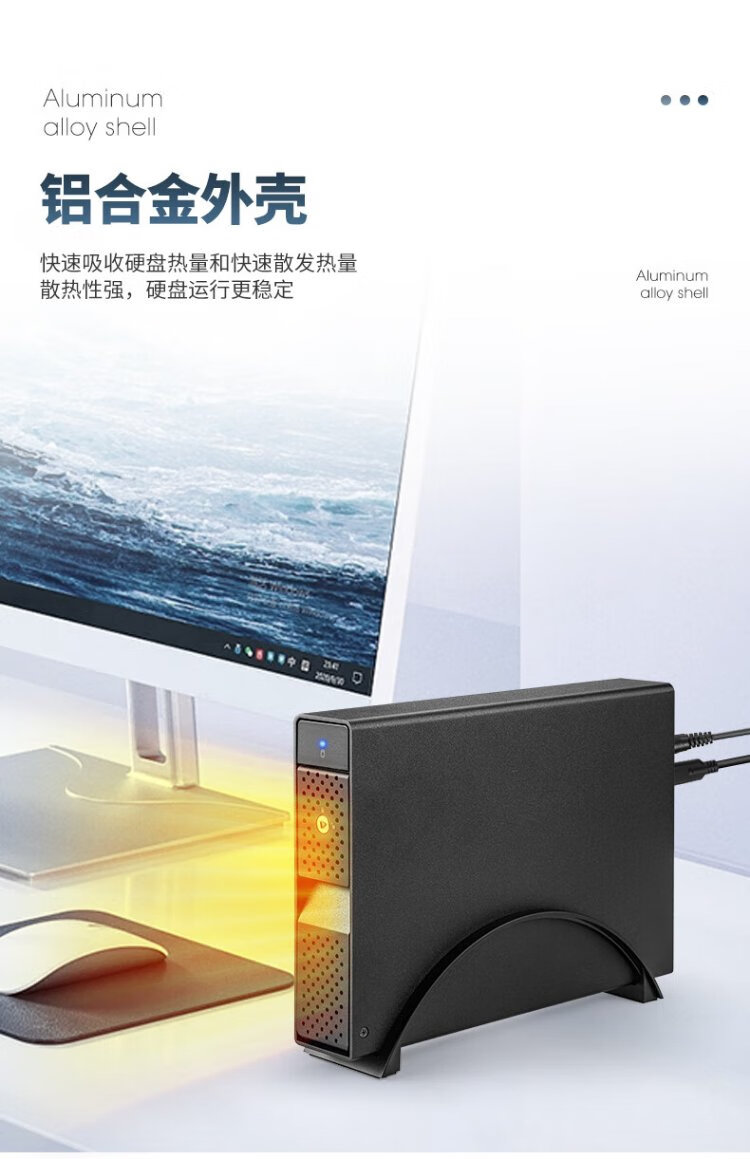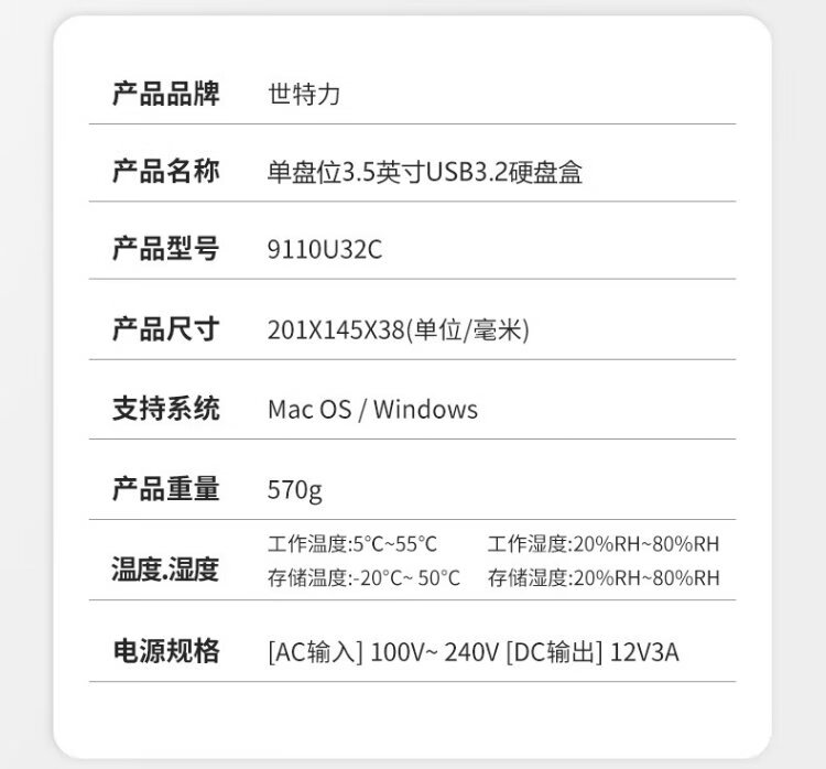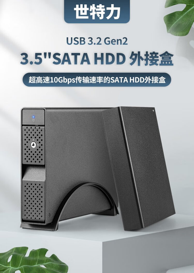 世特力3.5英寸单盘位移动硬盘盒9110U32C支持24T硬盘USB3.2 Type-C接口双数据线