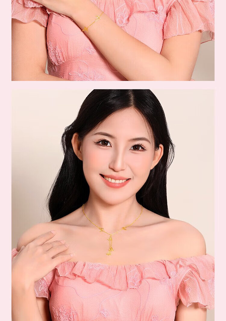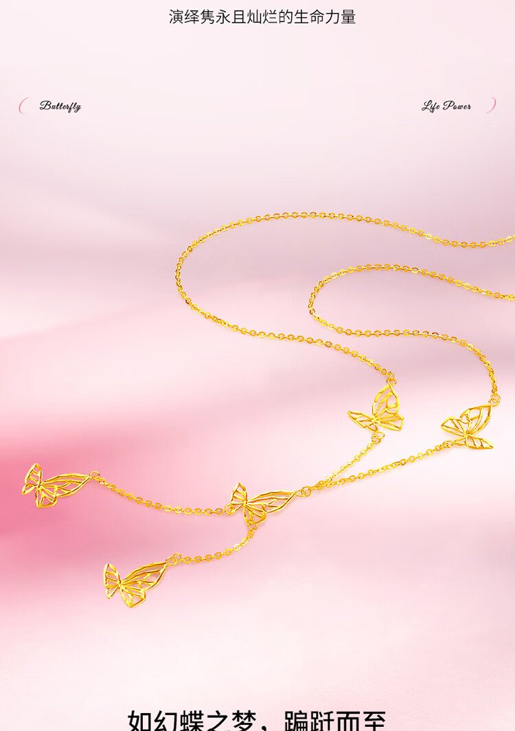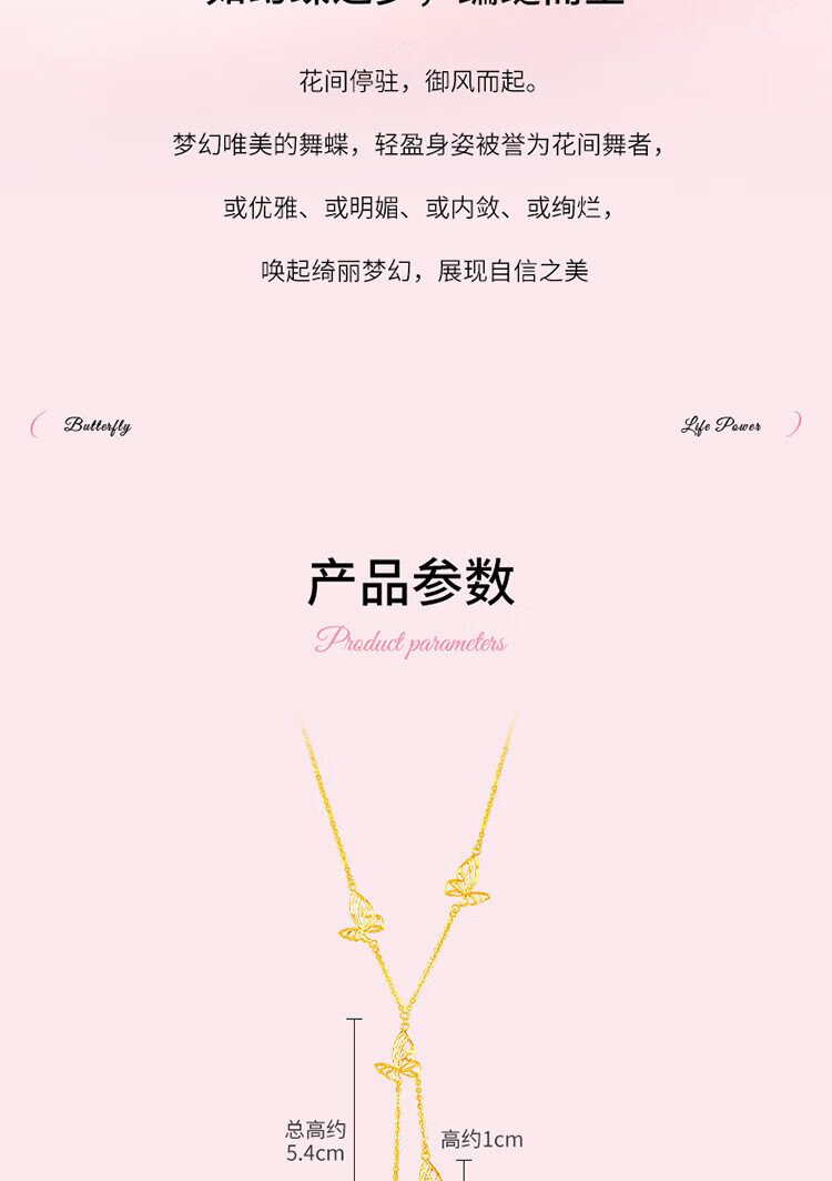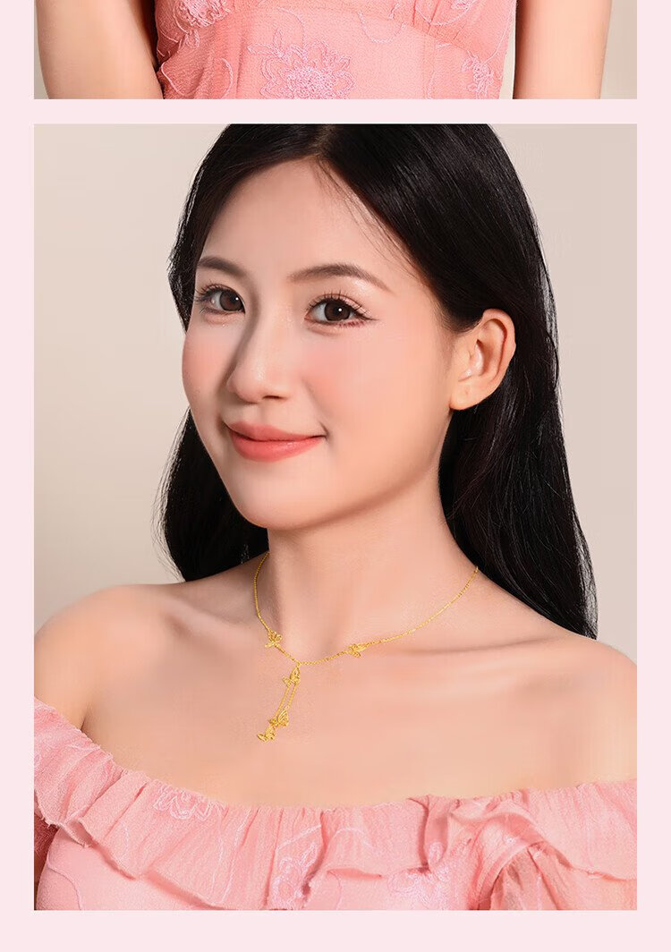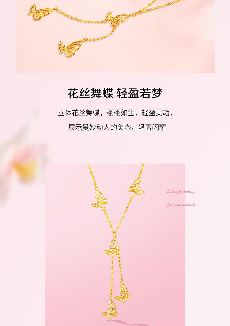 Mengjinyuan 18K gold necklace AU750 filigree butterfly set chain tassel clavicle chain as a birthday gift for girlfriend