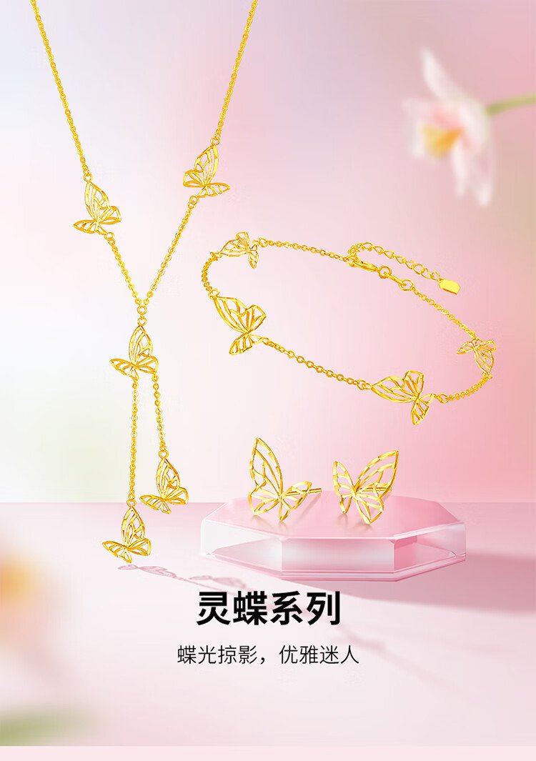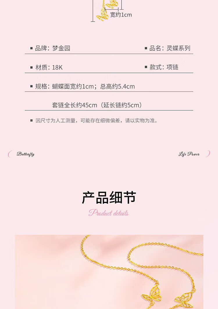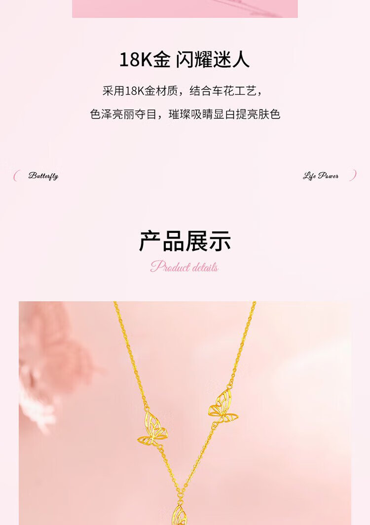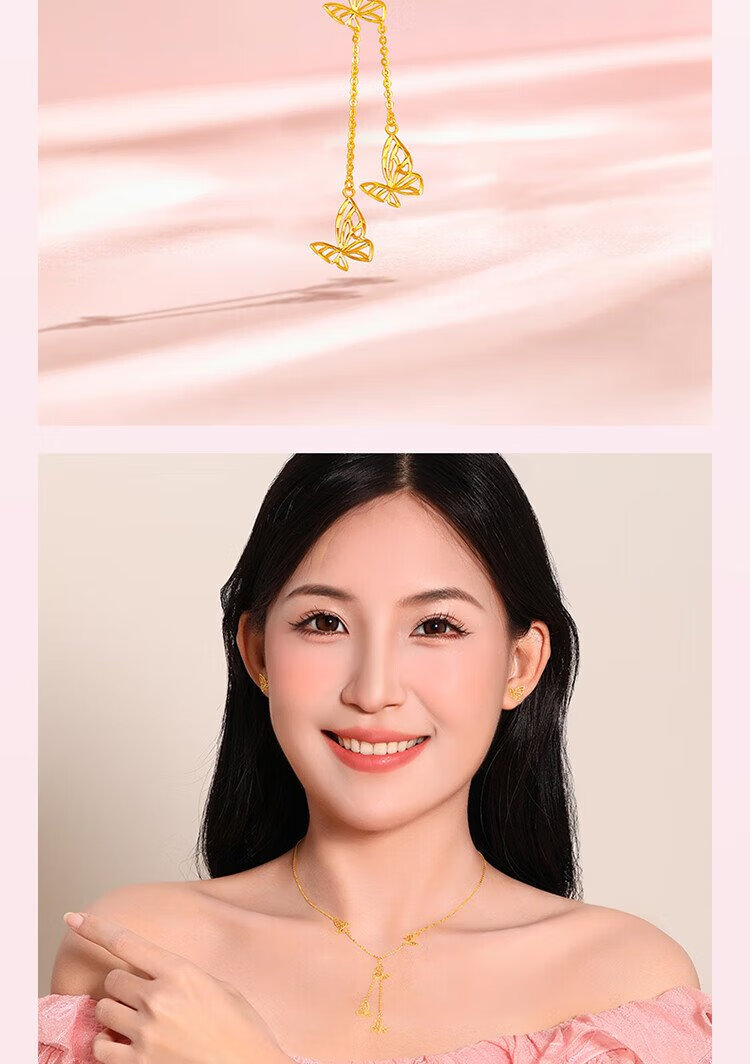 Mengjinyuan 18K gold necklace AU750 filigree butterfly set chain tassel clavicle chain as a birthday gift for girlfriend