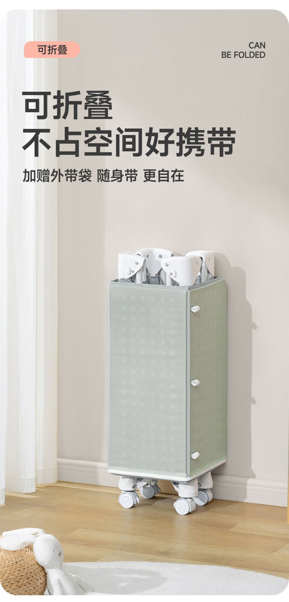 Coolbaby folding crib can be spliced into a large bed with one-click opening and closing, multifunctional crib pine gray standard model